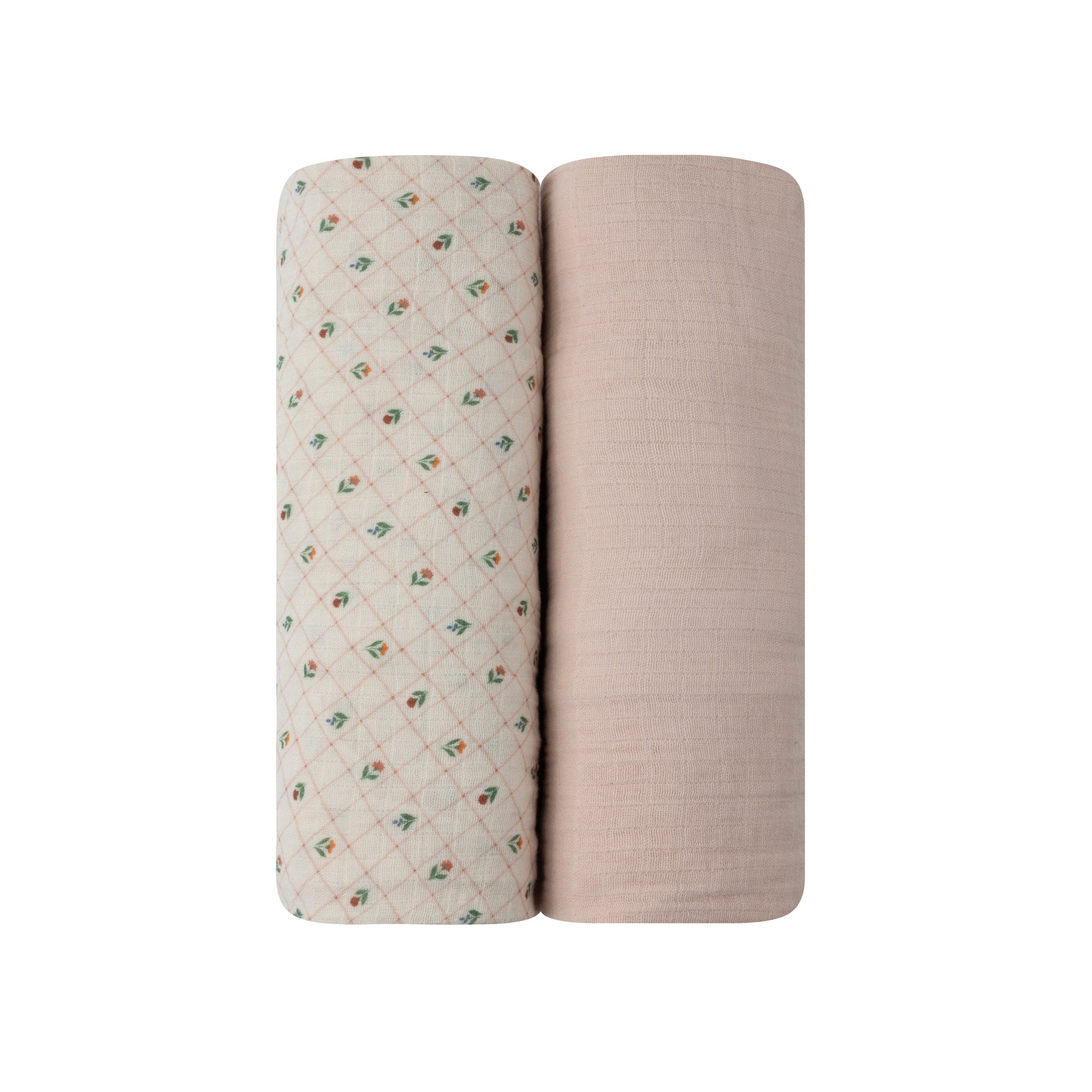 Baby Girl Muslin Swaddle Blanket 2-Pack - Pink - Floral Grid