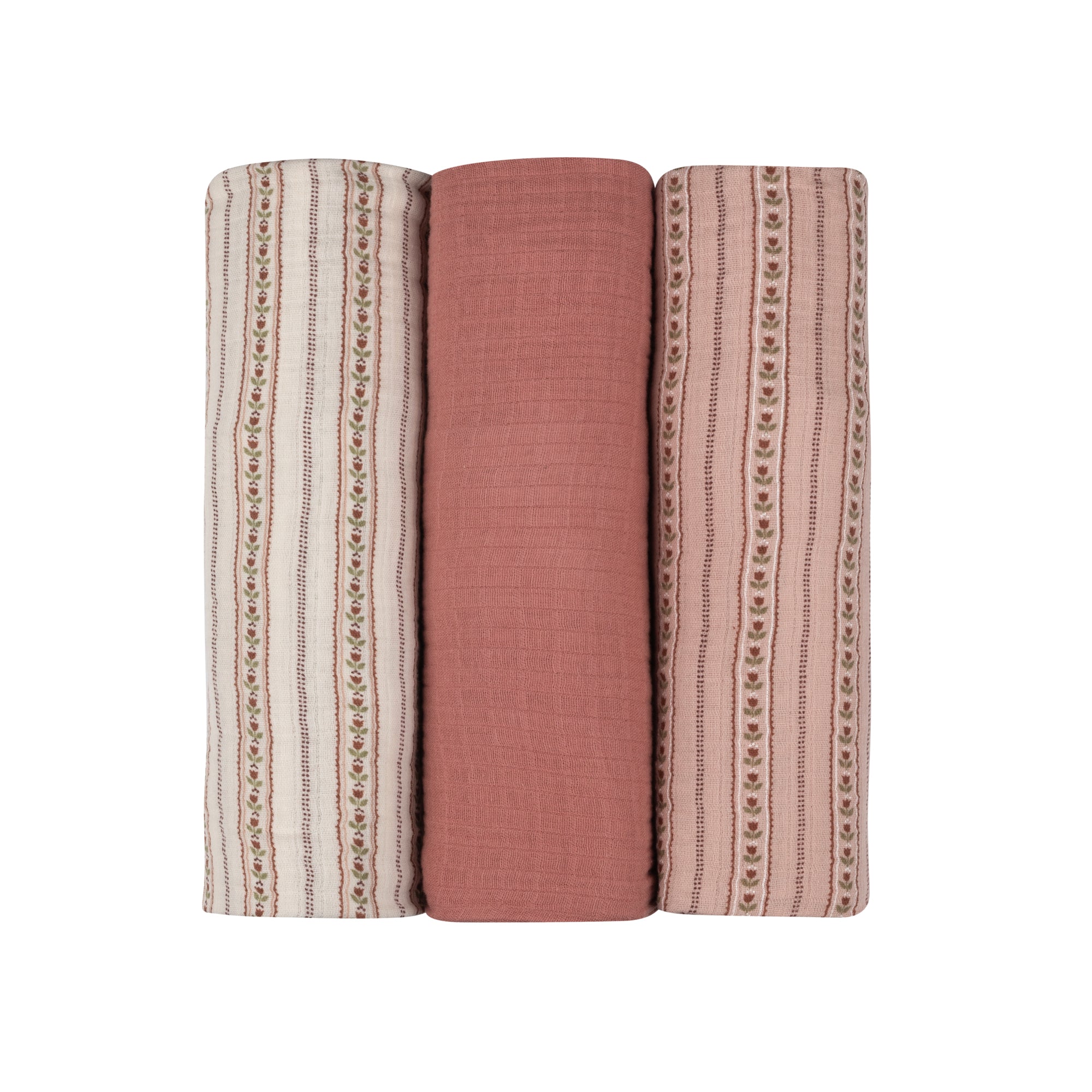Baby Girl Muslin Swaddle Blanket 3-Pack - Ivory Pink - Linear Tulip