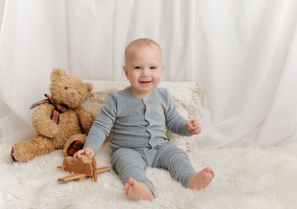 Introduce your little one to ultimate comfort with our Velour Center Floral Collection Lounge Set. Crafted from soft, luxurious velour fabric, this charming set features a delicate floral design that's perfect for playtime or relaxation. The gentle, breathable material keeps babies and toddlers cozy without overheating. Ideal for lounging at home or casual outings, this set combines style with practicality—giving your child that cloud-soft feel they'll love while you enjoy the durability and easy care.