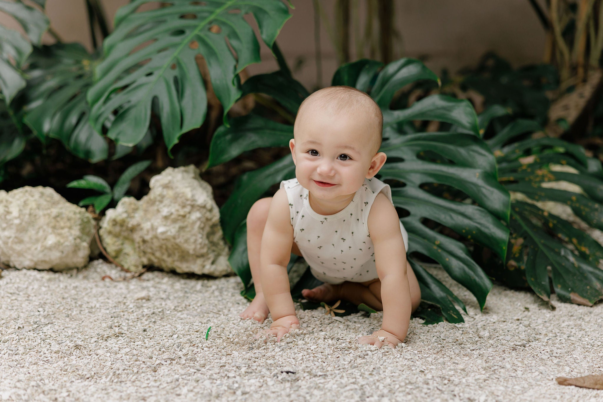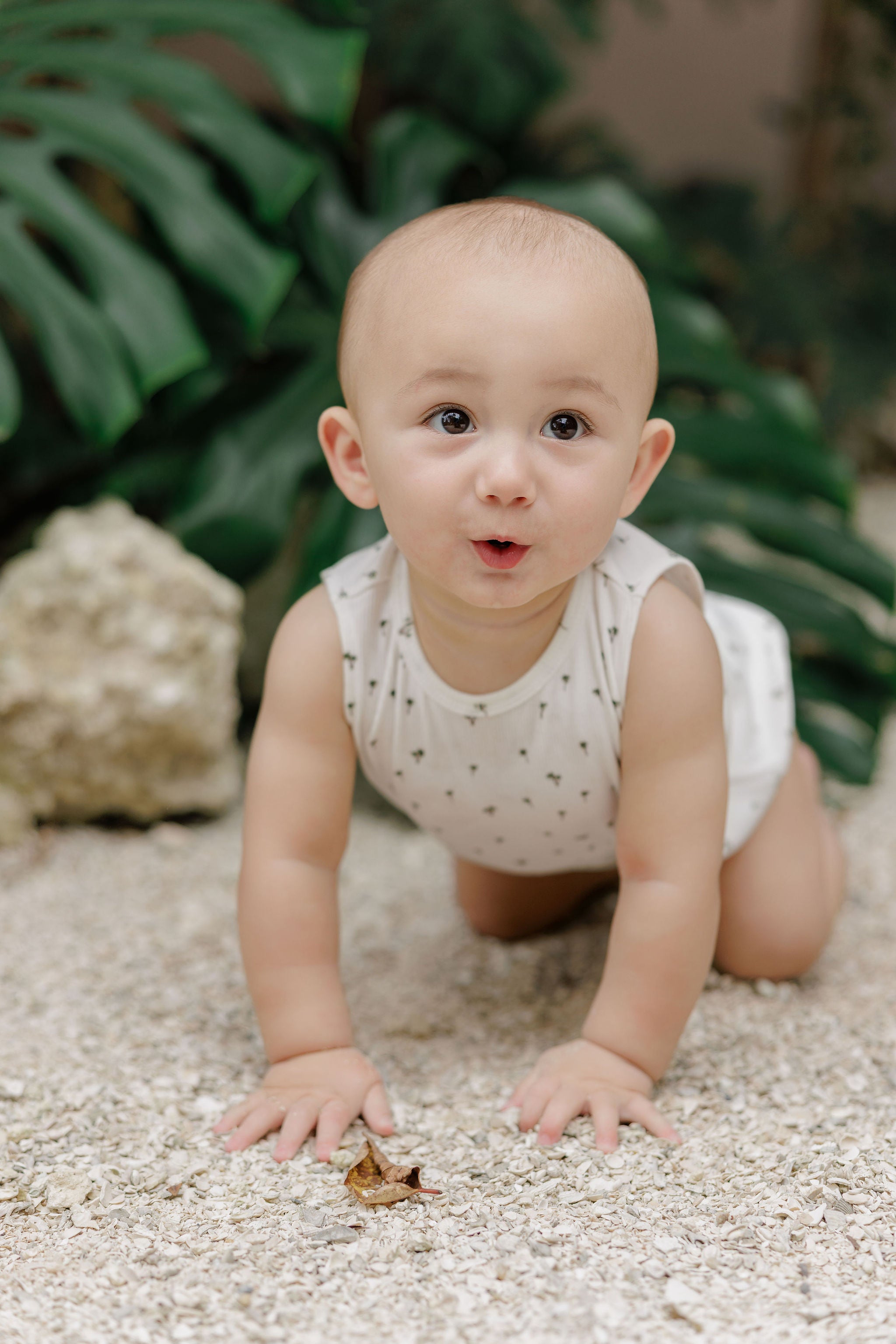 Baby Boy Romper - Ivory - Printed Palm Trees