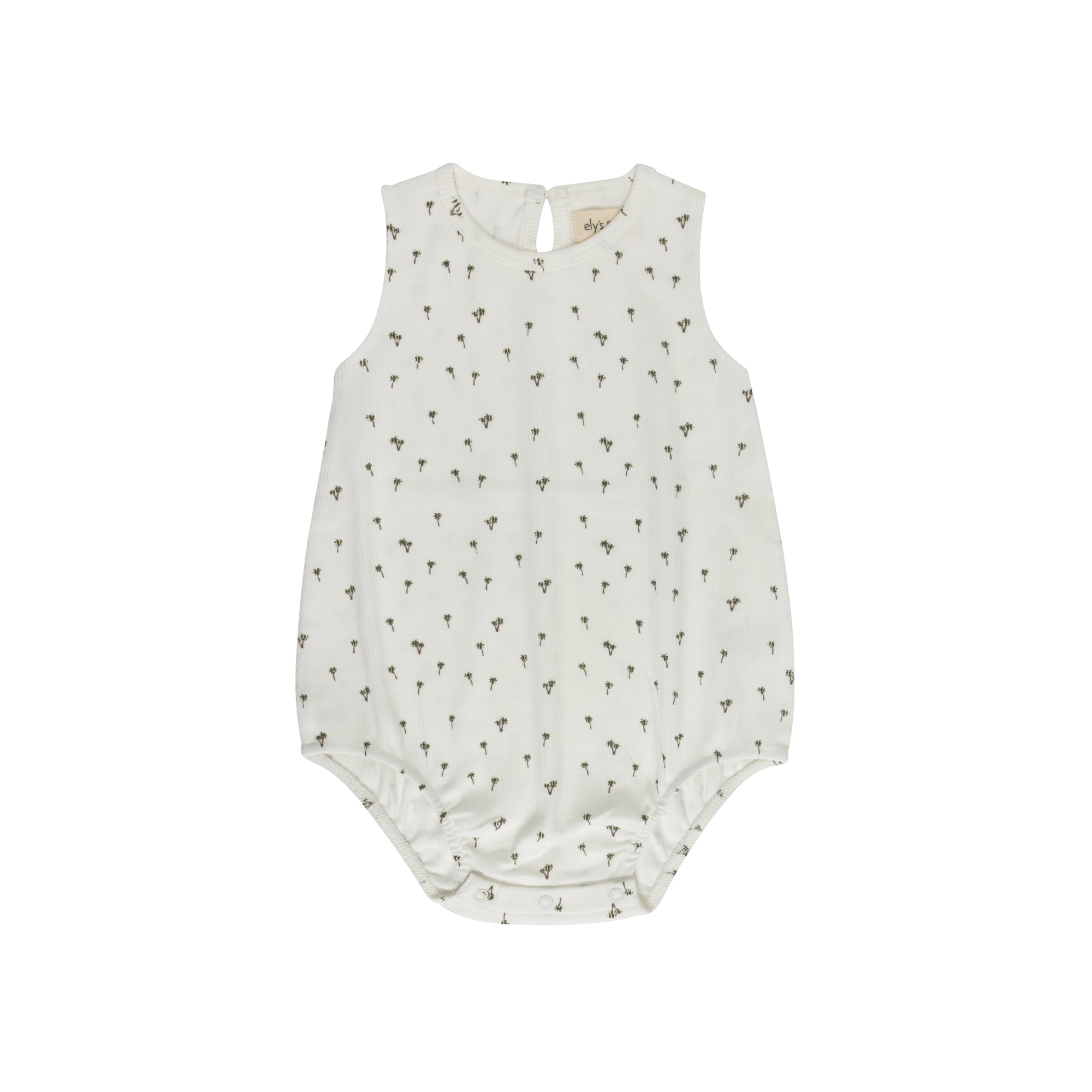 This soft ribbed romper features the all-over palm print for a relaxed, sun-ready look.