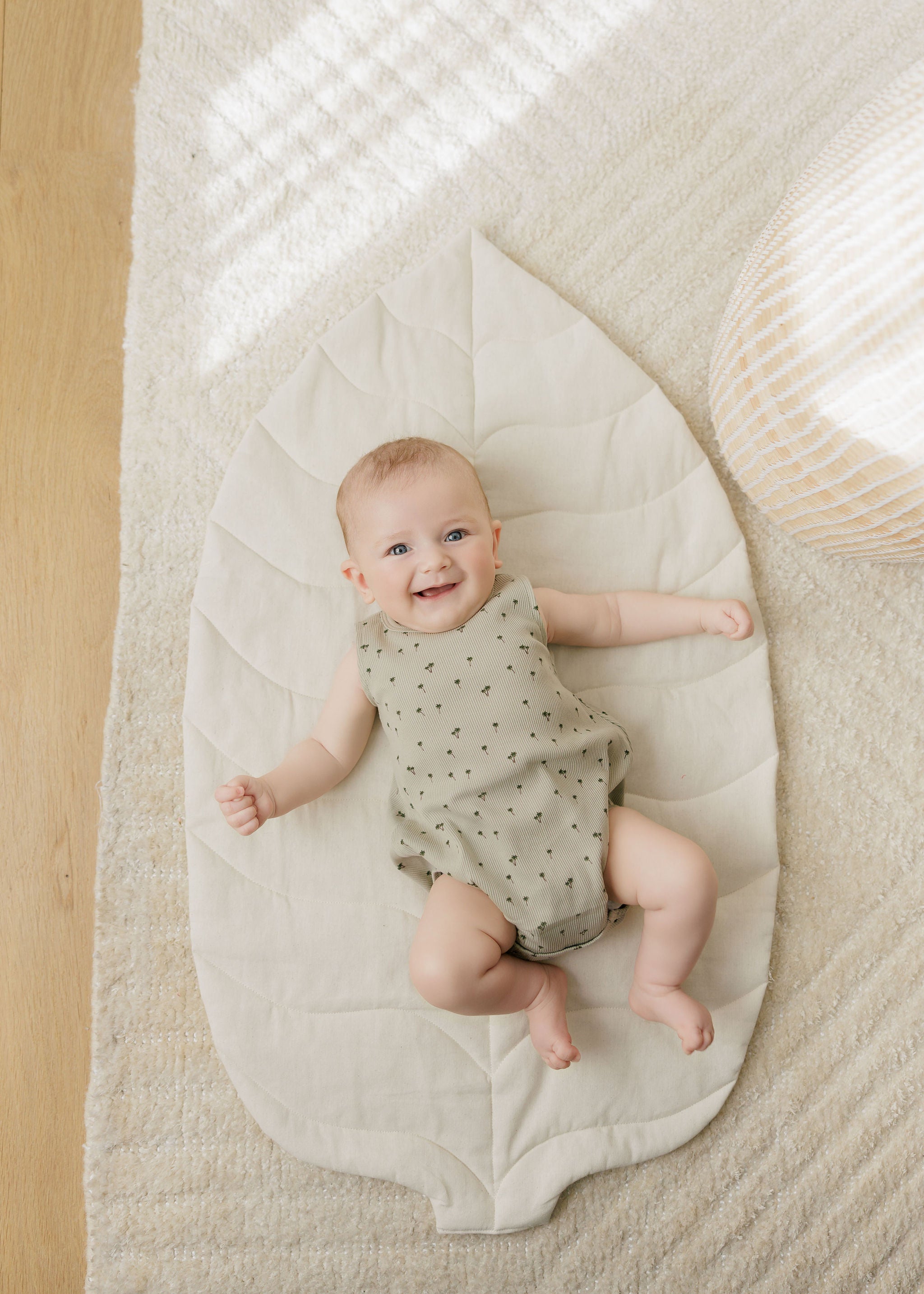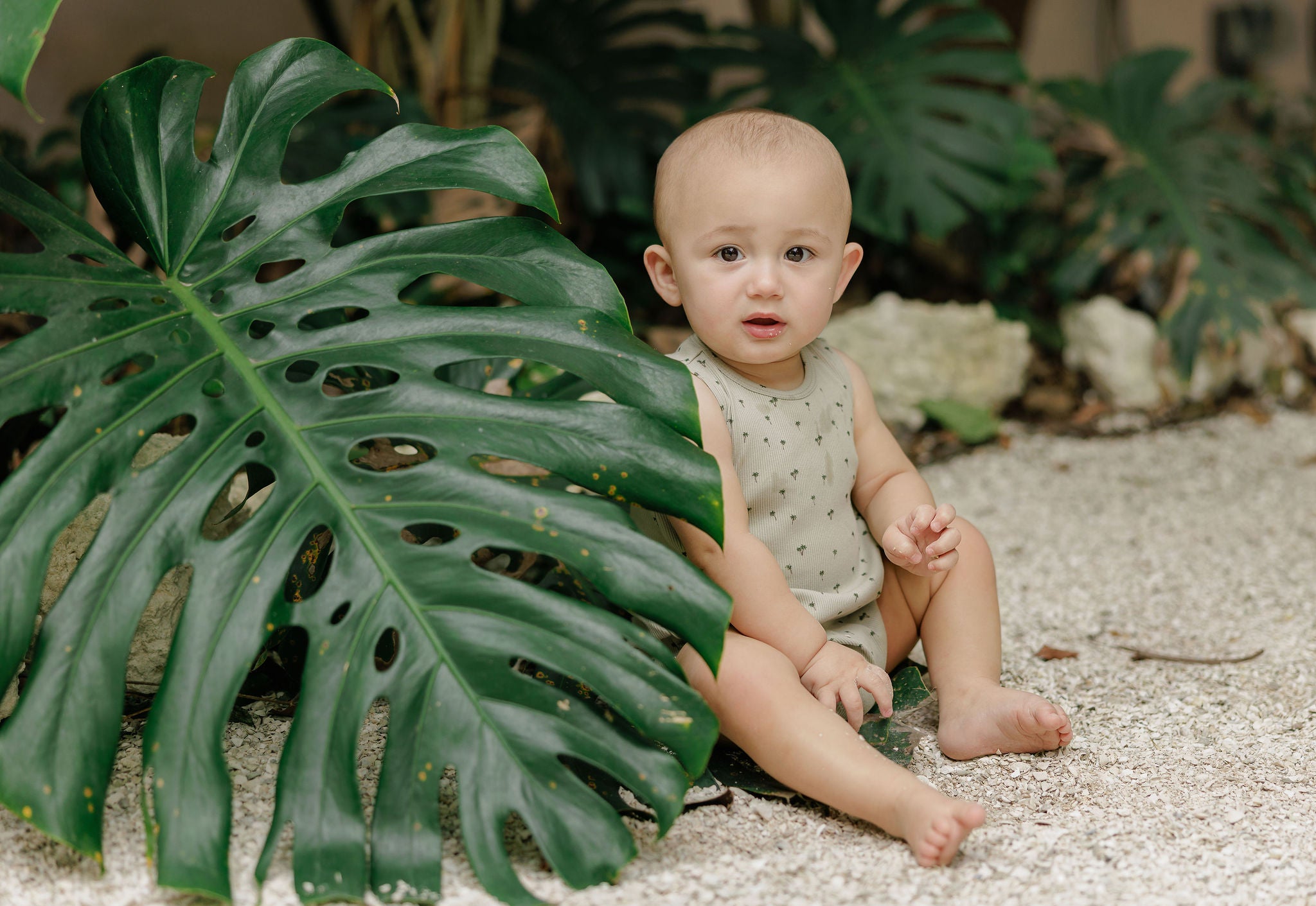 Baby Boy Romper - Sage - Printed Palm Trees