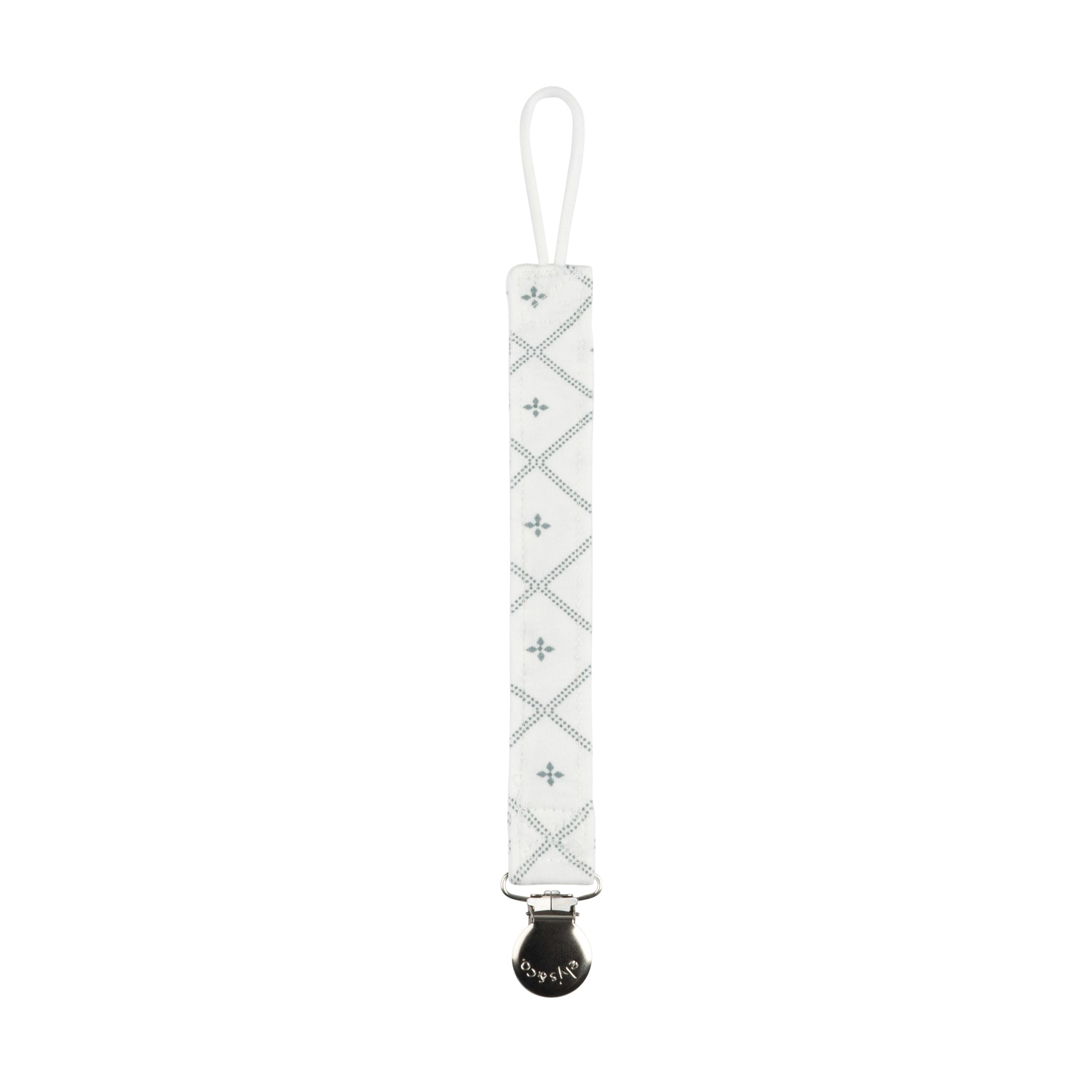 Never lose your little one's pacifier with our Diamond Print Collection Paci Clip! Made of soft jersey cotton, it's the perfect mix of stylish and practical. Not to mention, it's washable, so no need to worry about spit up or messes. Keep your baby stylish and happy with this must-have accessory.
