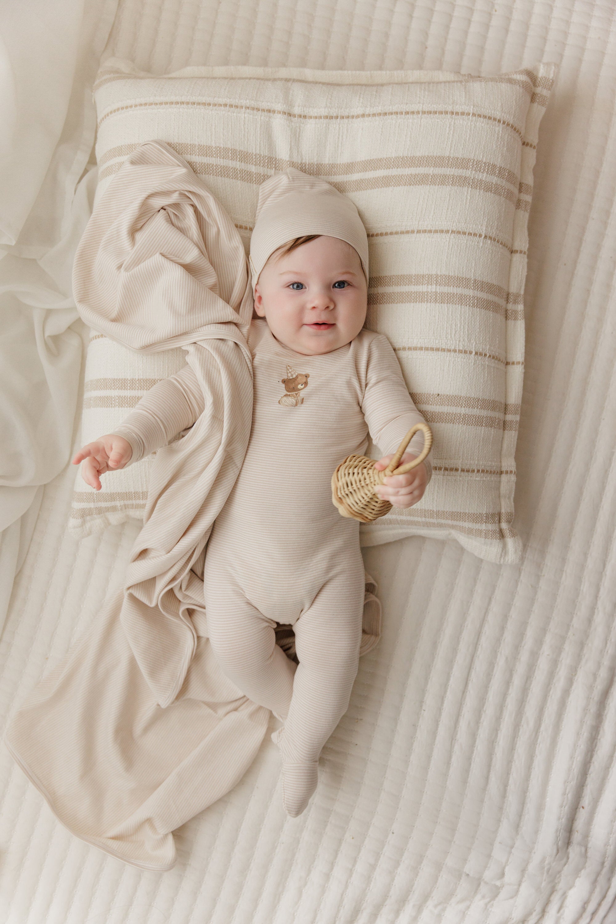 Indulge in our French Terry Footie, made from luxurious cotton. This adorable design will keep your little one looking stylish and chic. Elevate your child's wardrobe with this exclusive piece from our Circus Bear Collection.