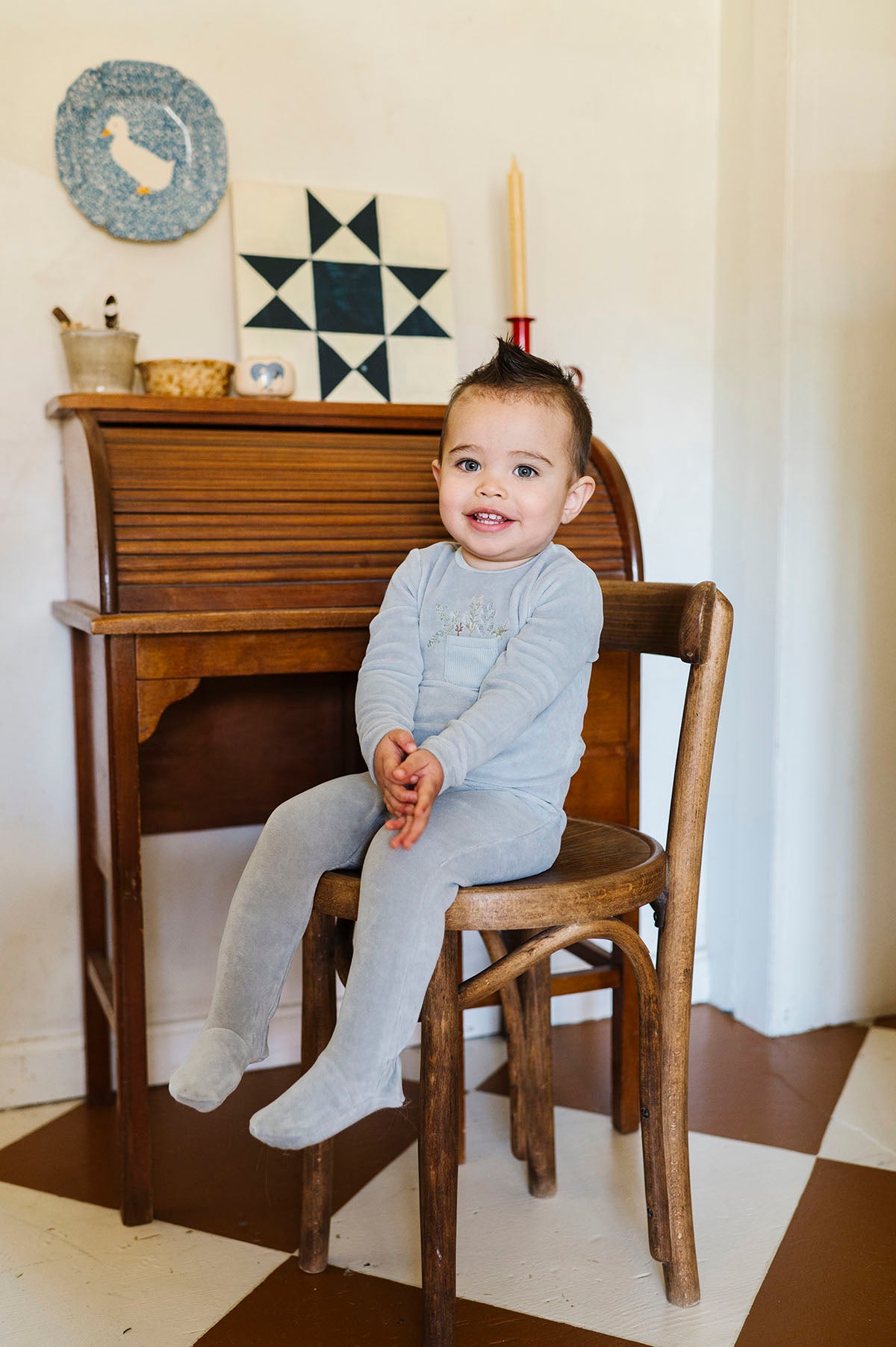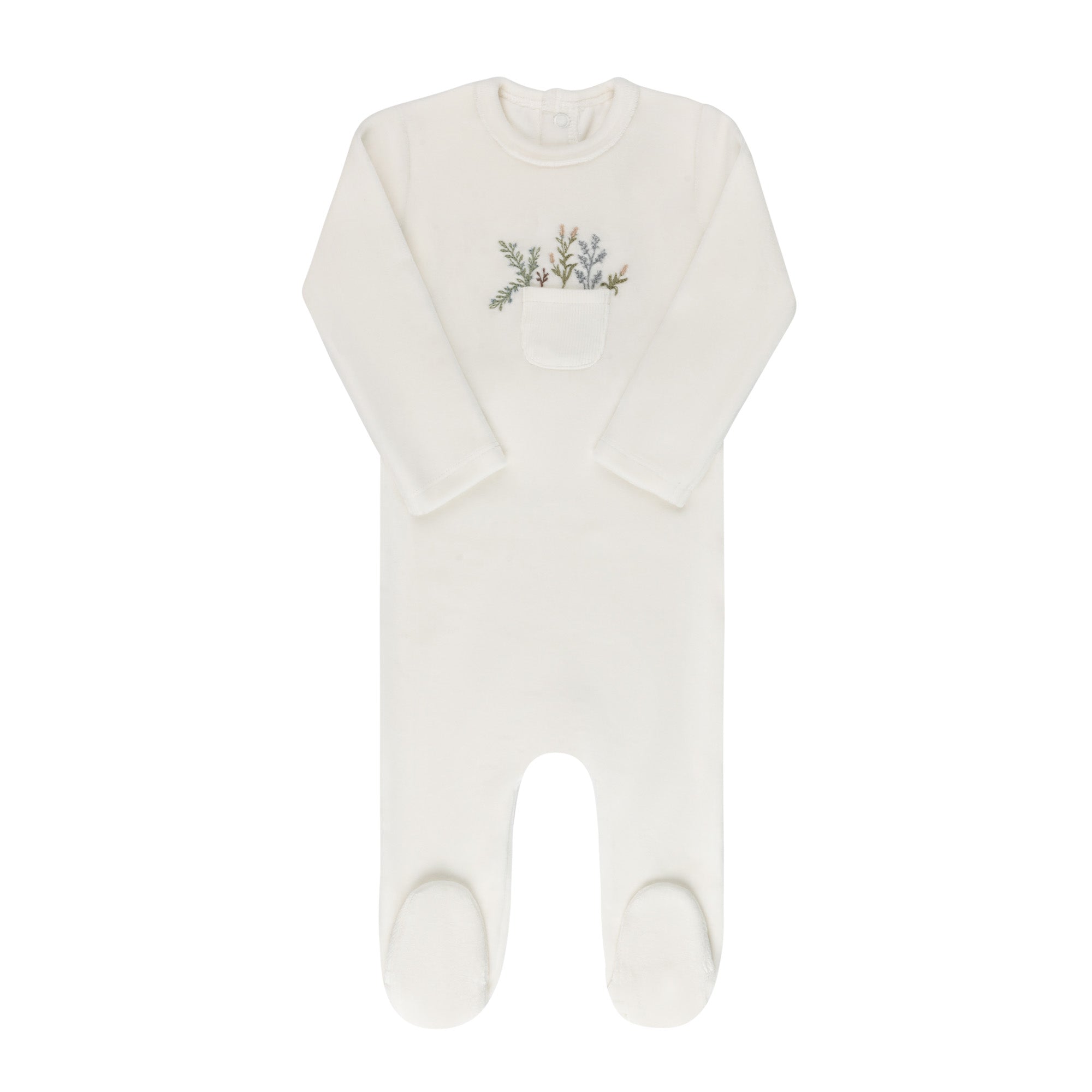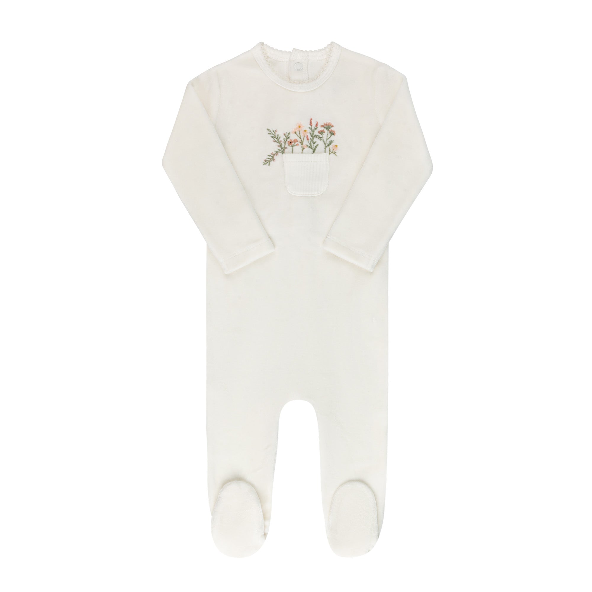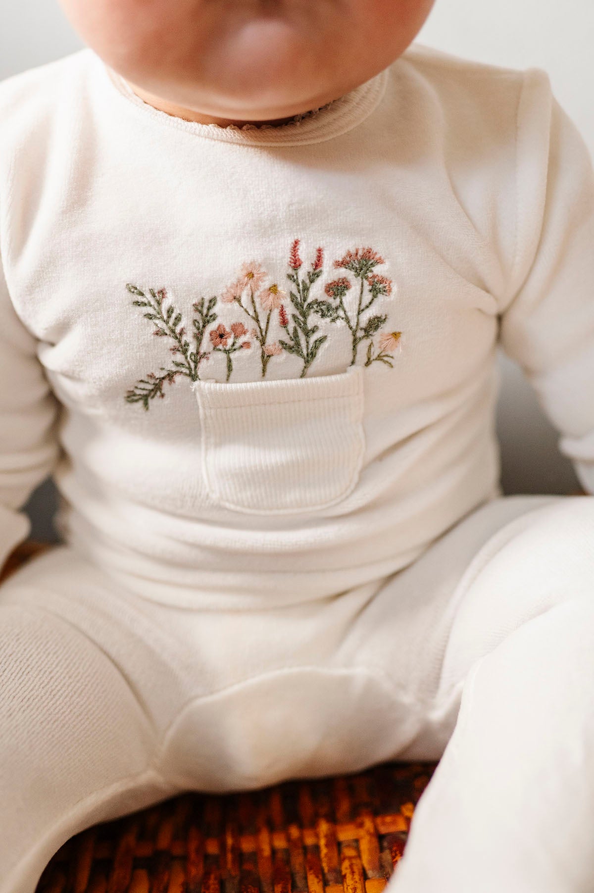 Dress your little one in soft luxury with our Velour Pocket Full of Flowers Collection Footie. Made from plush velour, this footie offers ultimate comfort for your baby. The adorable ribbed pocket design adds a touch of charm. The perfect outfit for both cuddles and playtime!