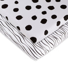 Magnificent Style: Modern & Neutral Perfect for a baby boy or girl, abstract stripes & dots is a beautiful black and white styled sheet set that is trendy and gender neutral! Containing two sheets, ribbons in a striped, edgy style and drops in a fun, polka dot look, this set beautifully packaging, making it a lovely present for a baby shower or celebration.