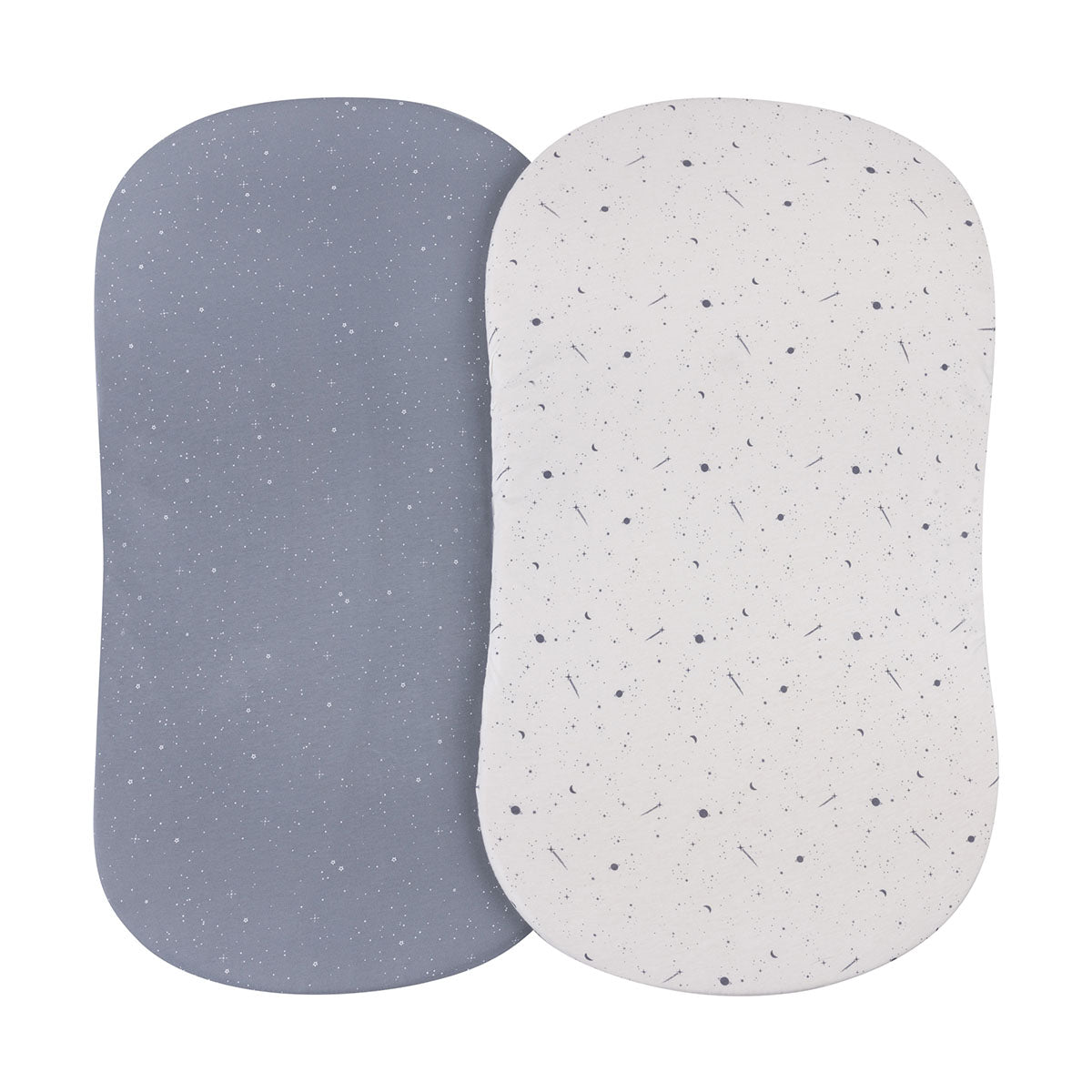 - Flexible-Fit Bassinet Sheet 2-Pack for baby boy in celestial prints, bundled in our charmingly cute and compact packaging, this set makes for the perfect baby shower gift!