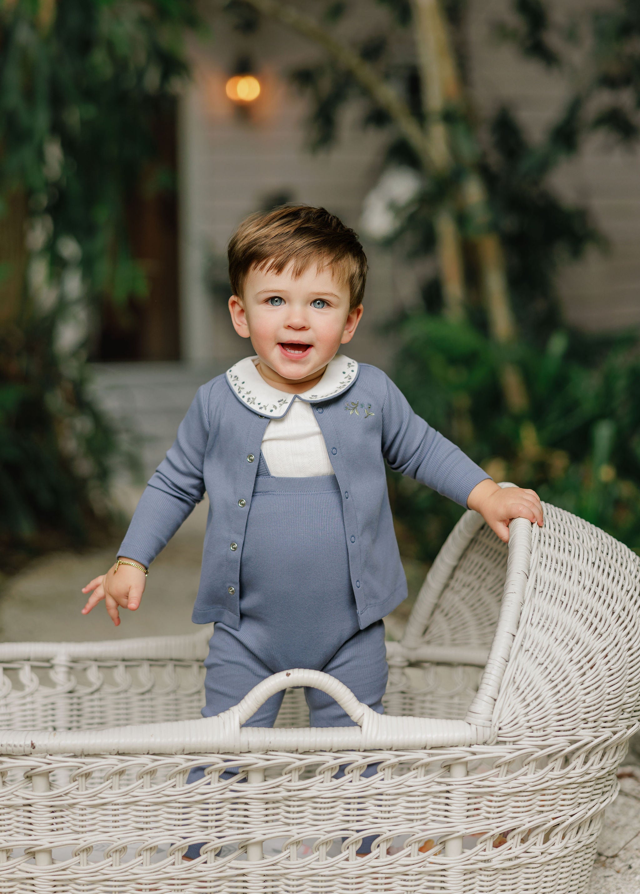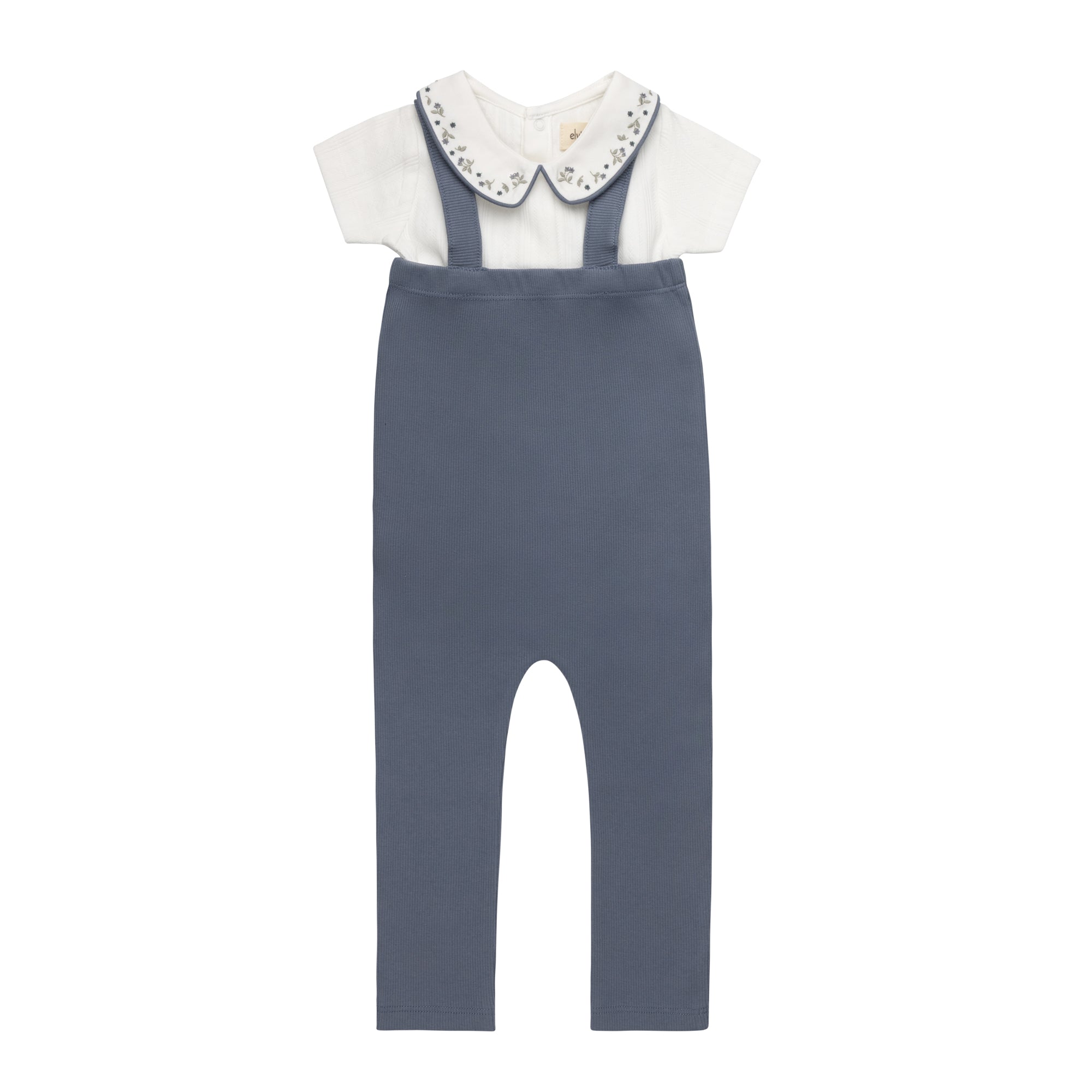 Boys Bodysuit and Overalls – Ivory Blue – Embroidered Collar
