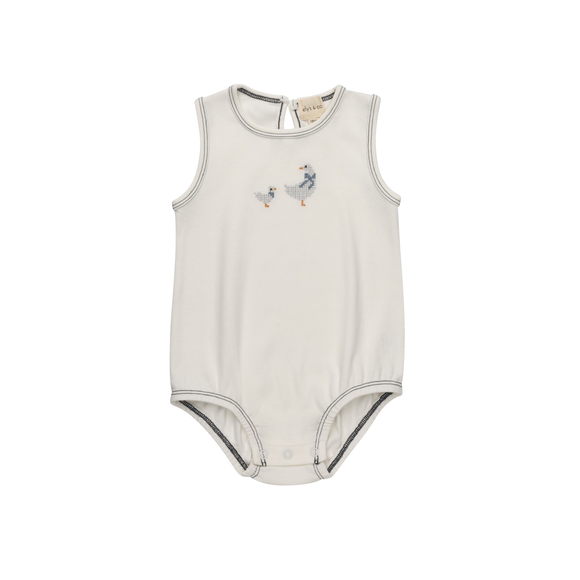 Boys Romper – Ivory Blue – Cross Stitch Duckling