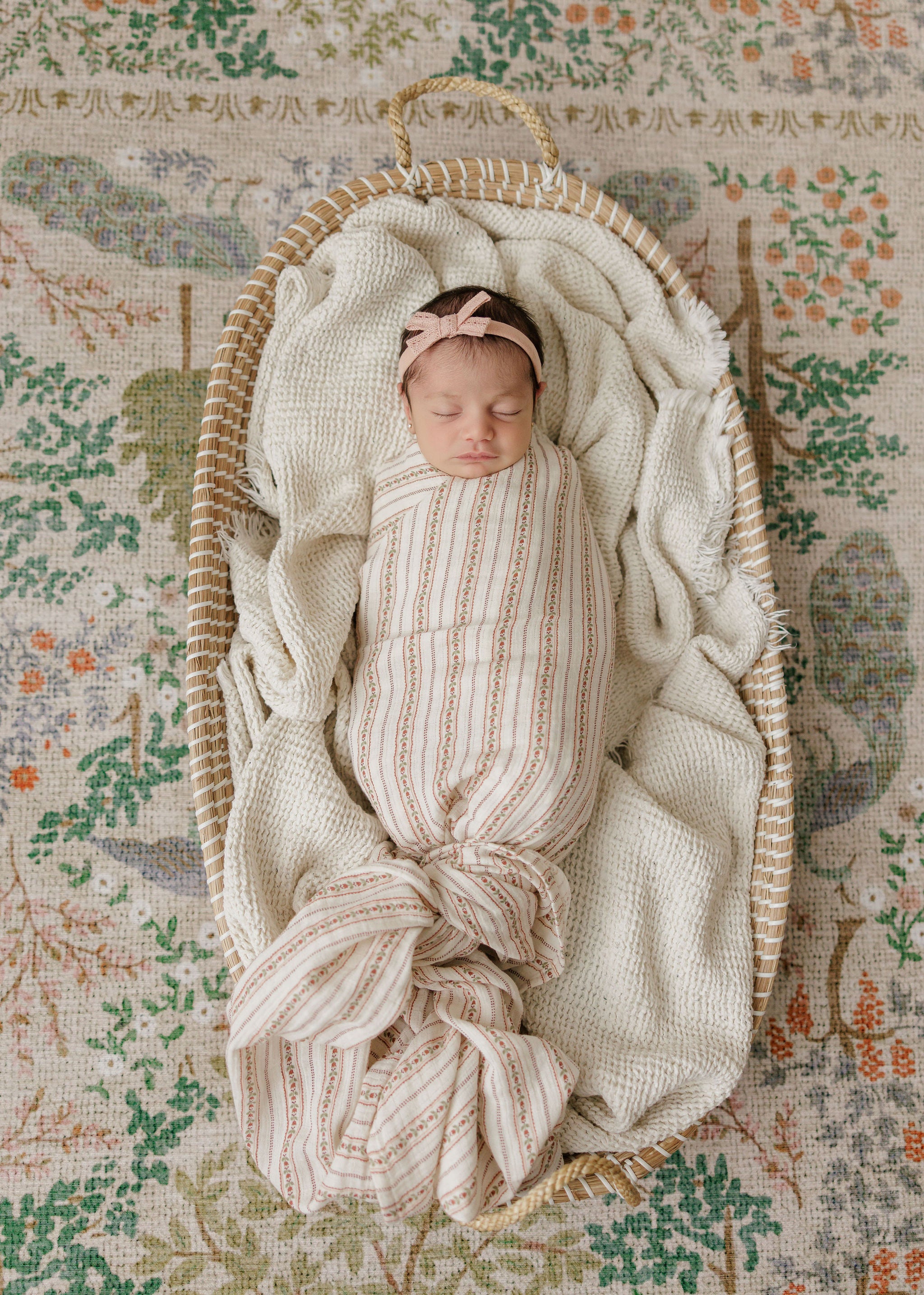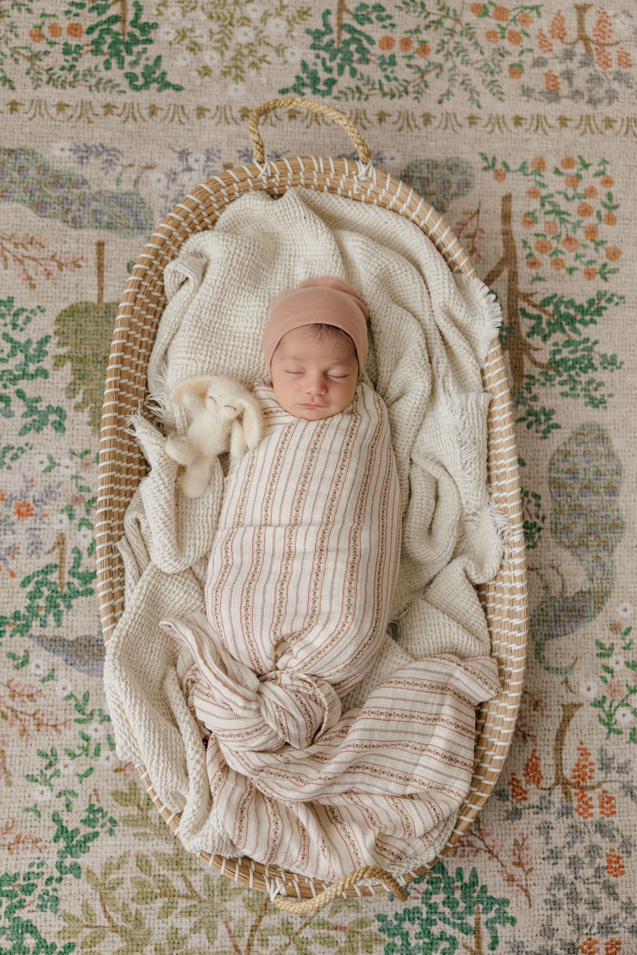 Baby Girl Footie and Bonnet - Ivory Pink - Linear Tulip