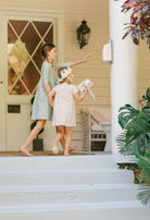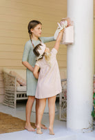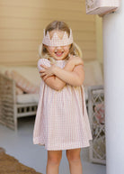 This gingham dress features the signature owl patch for a sweet statement silhouette in blush or sage.