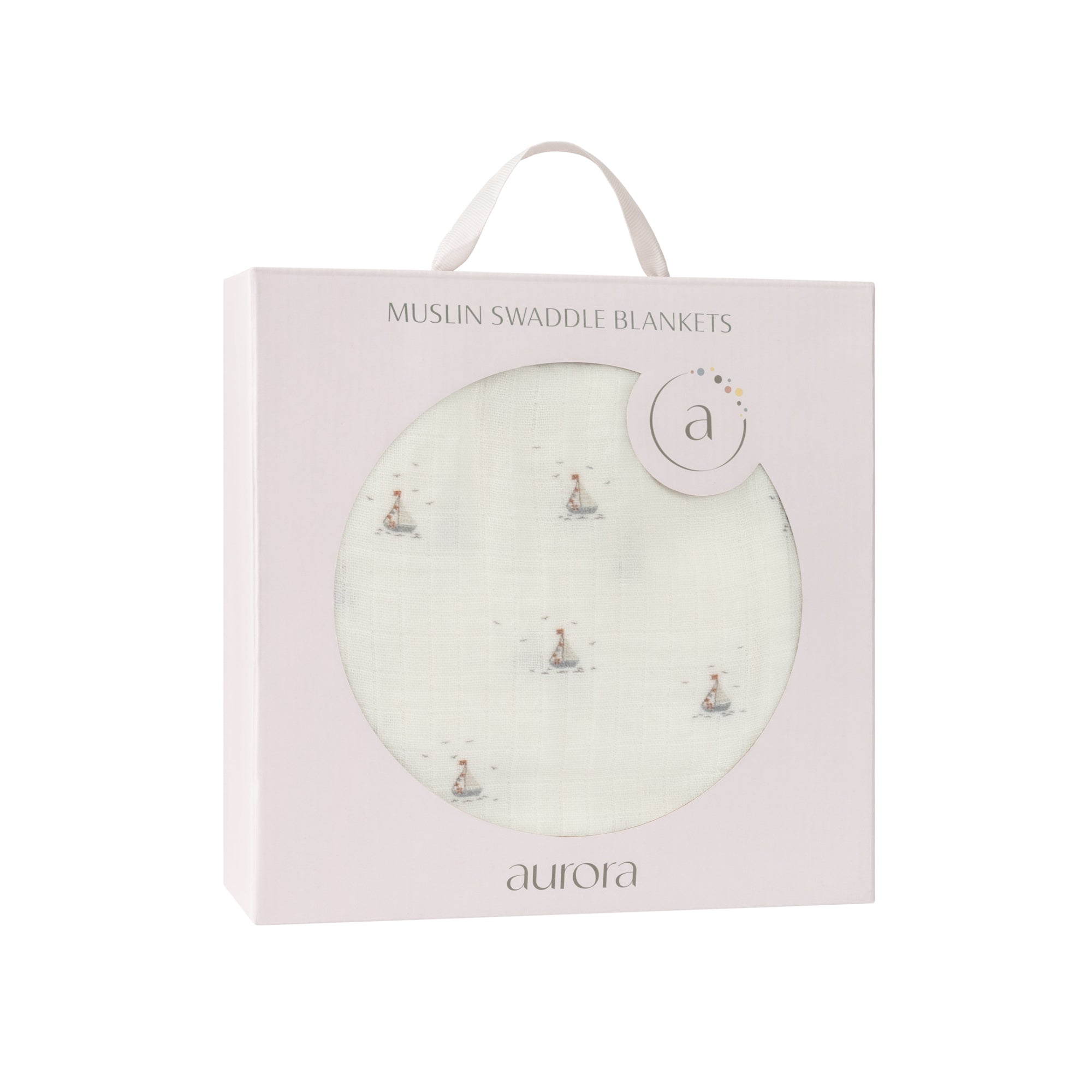 Baby Boy Muslin Swaddle Blanket – Blue – Nautical Print