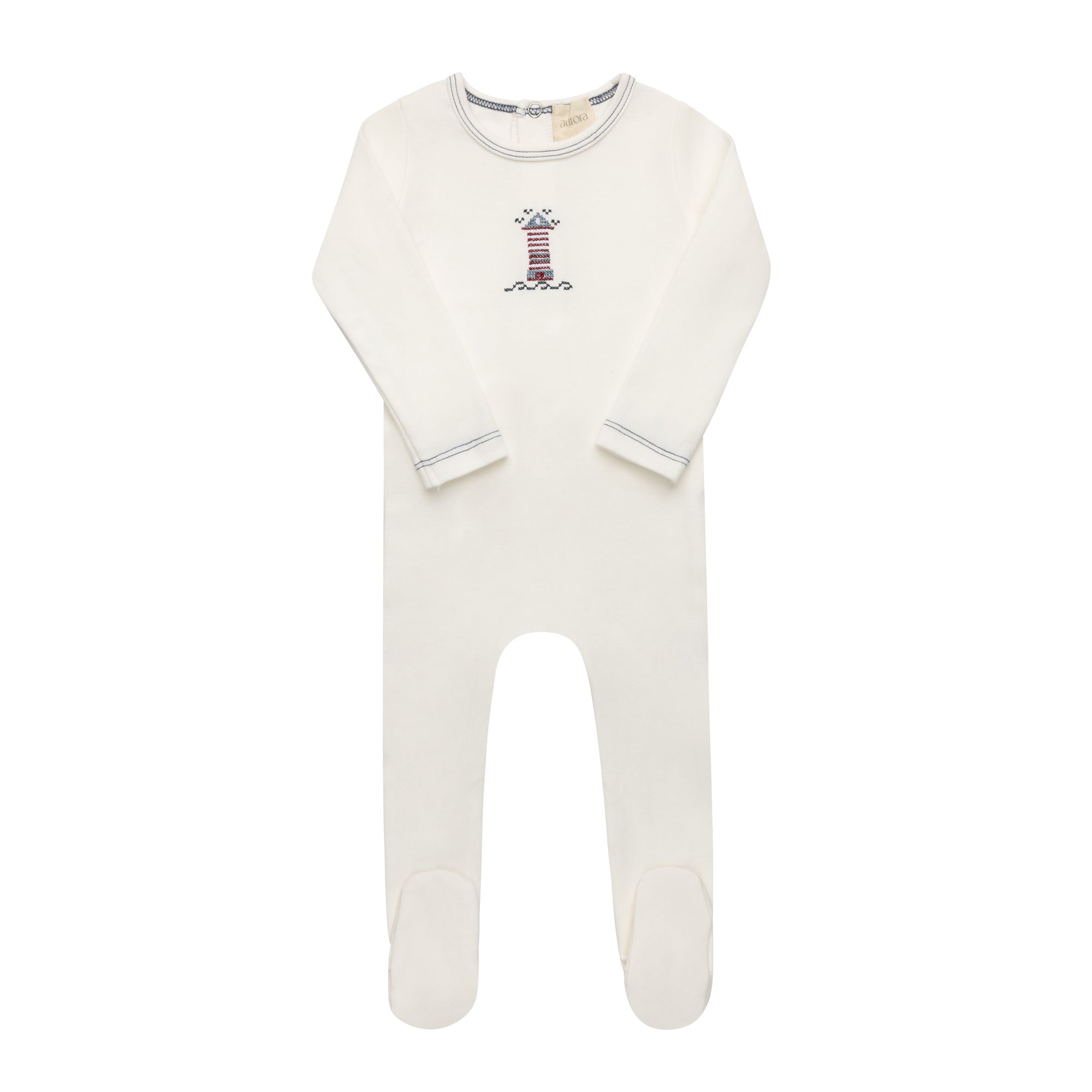 Baby Boy Footie – Ivory Blue – Cross Stitch Lighthouse