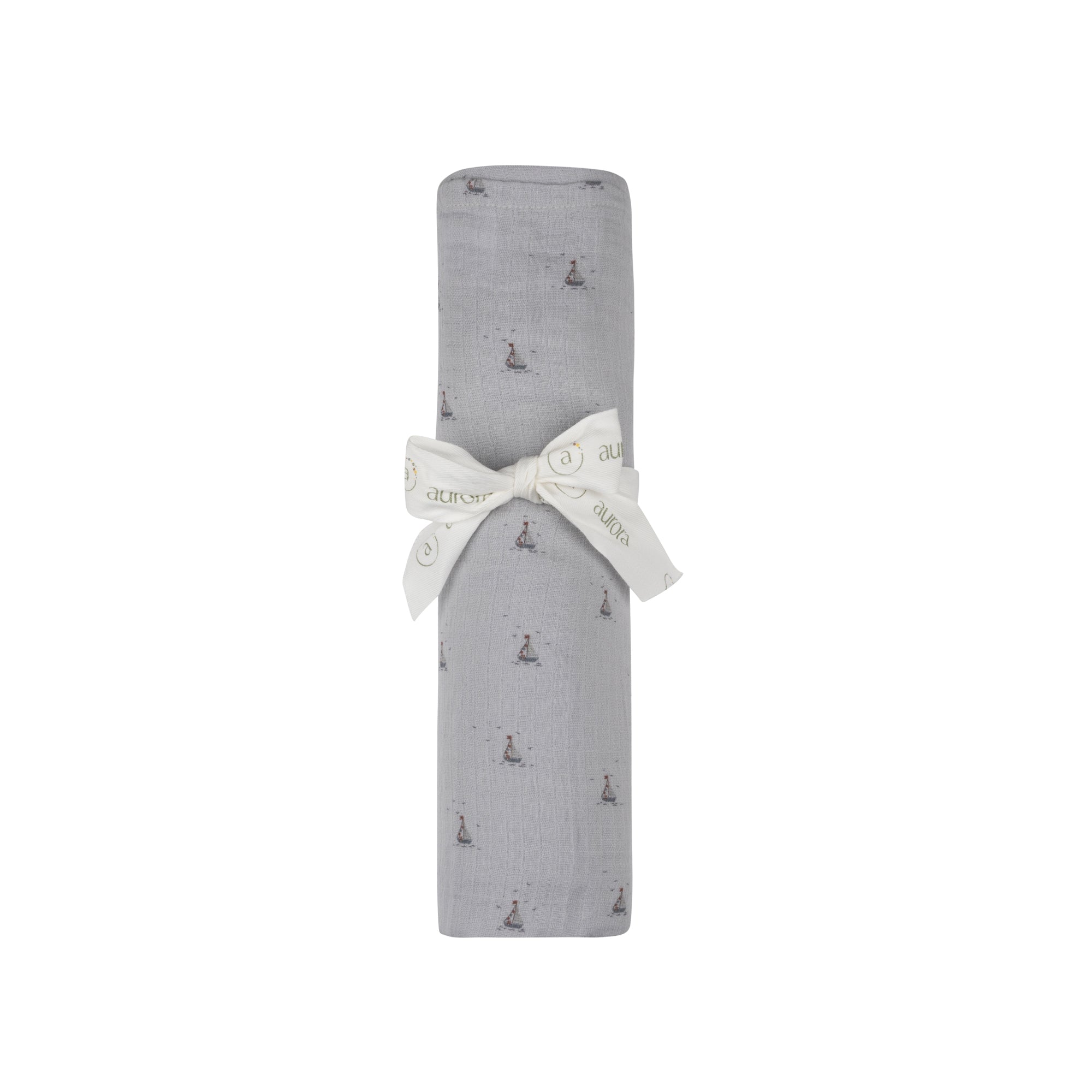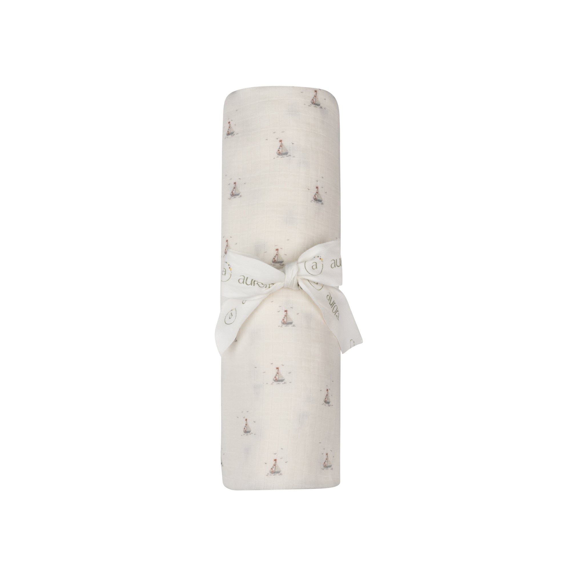 Baby Boy Muslin Swaddle Blanket – Ivory Blue – Nautical Print