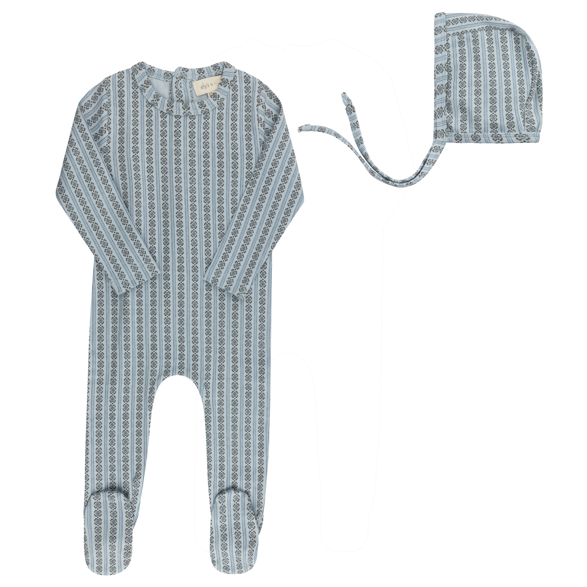 Baby Boy Footie and Bonnet – Blue – Linear Leaf