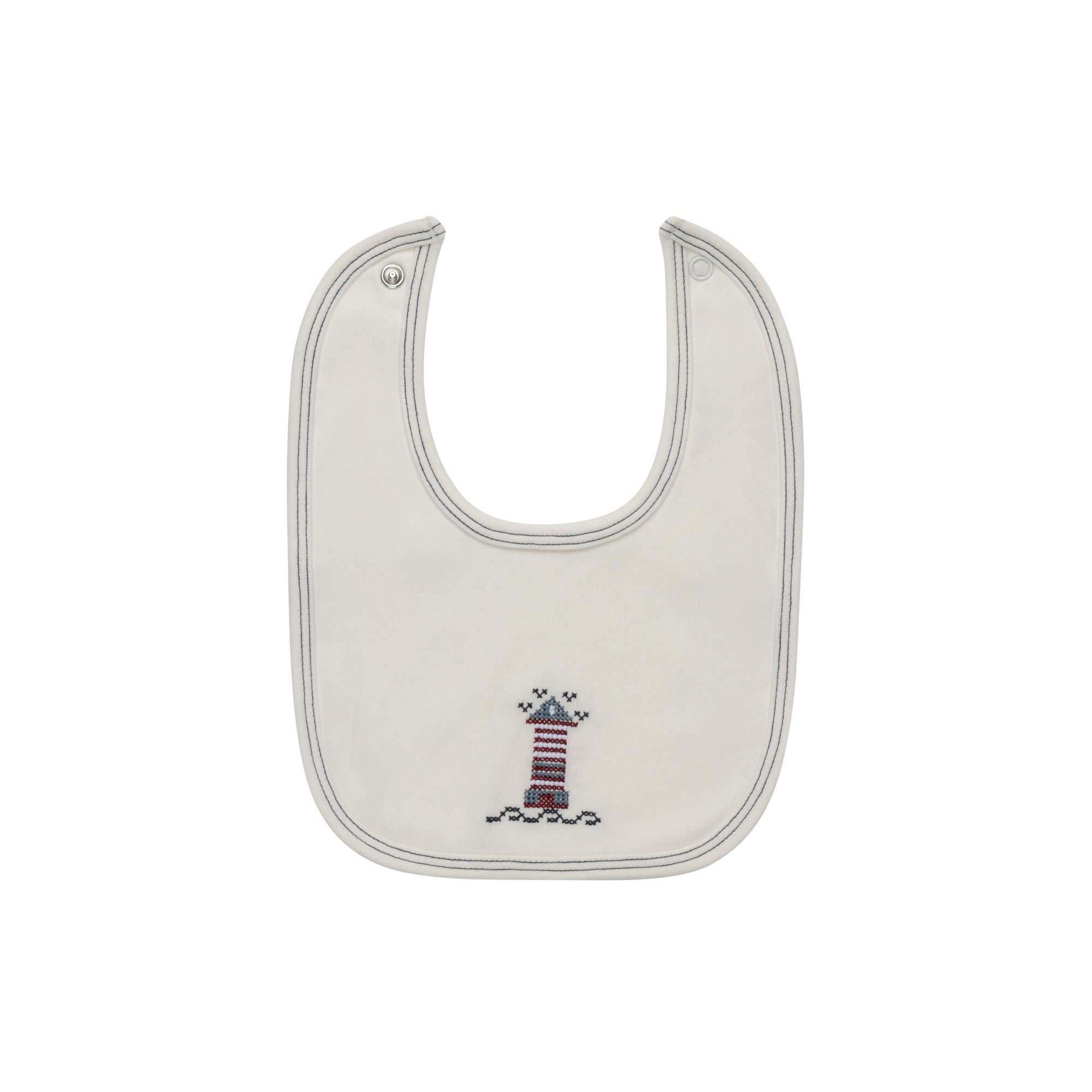 Baby Boy Bib – Ivory Blue – Cross Stitch Lighthouse