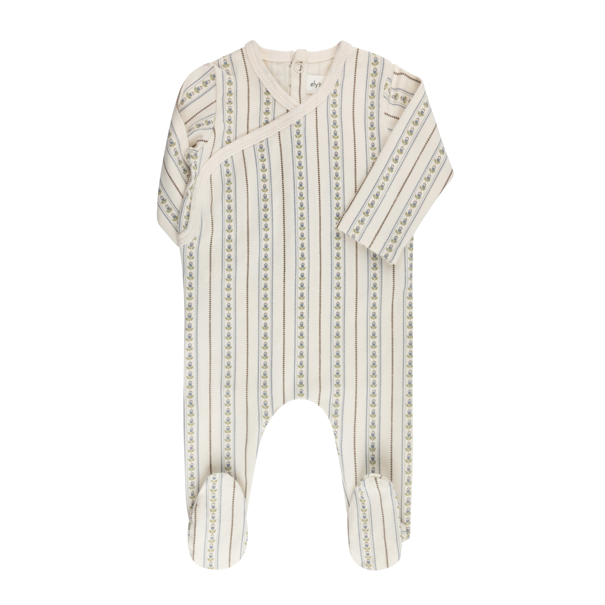 This kimono-style baby footie (Stretchy) features the signature linear tulip stripe for a sweet and timeless look.