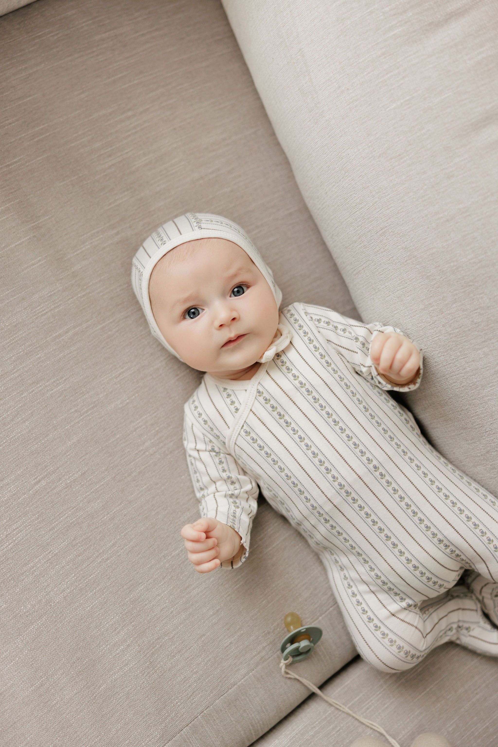 Soft, delicate tulip stripes in the sweetest vintage tones, the Linear Tulip Collection is made especially for baby. Thoughtfully designed in coordinating pieces, each style is crafted with a gentle stretch for the coziest, cuddliest fit.
