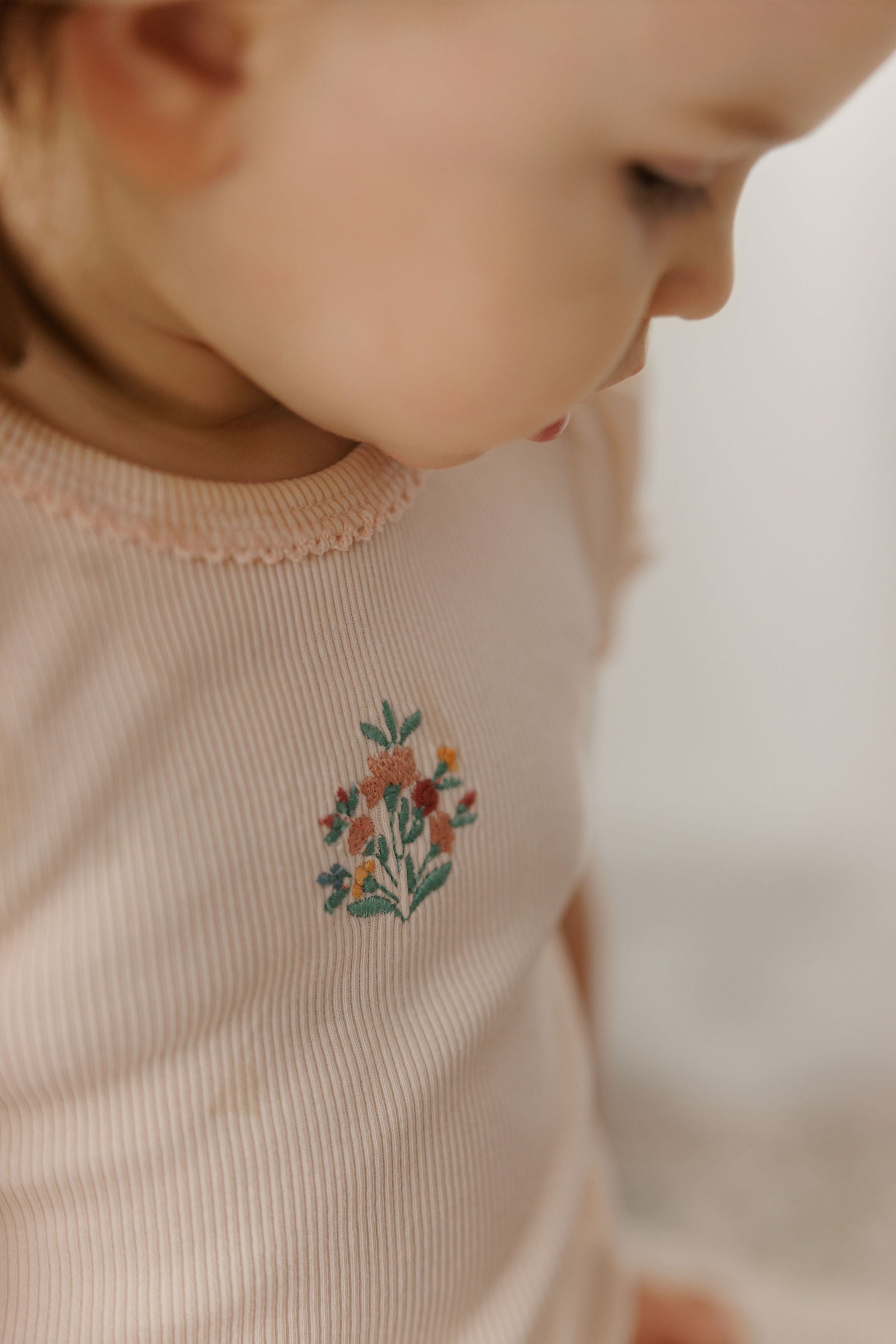 Girls Tshirt and Bloomer Set - Pink - Embroidered Florals