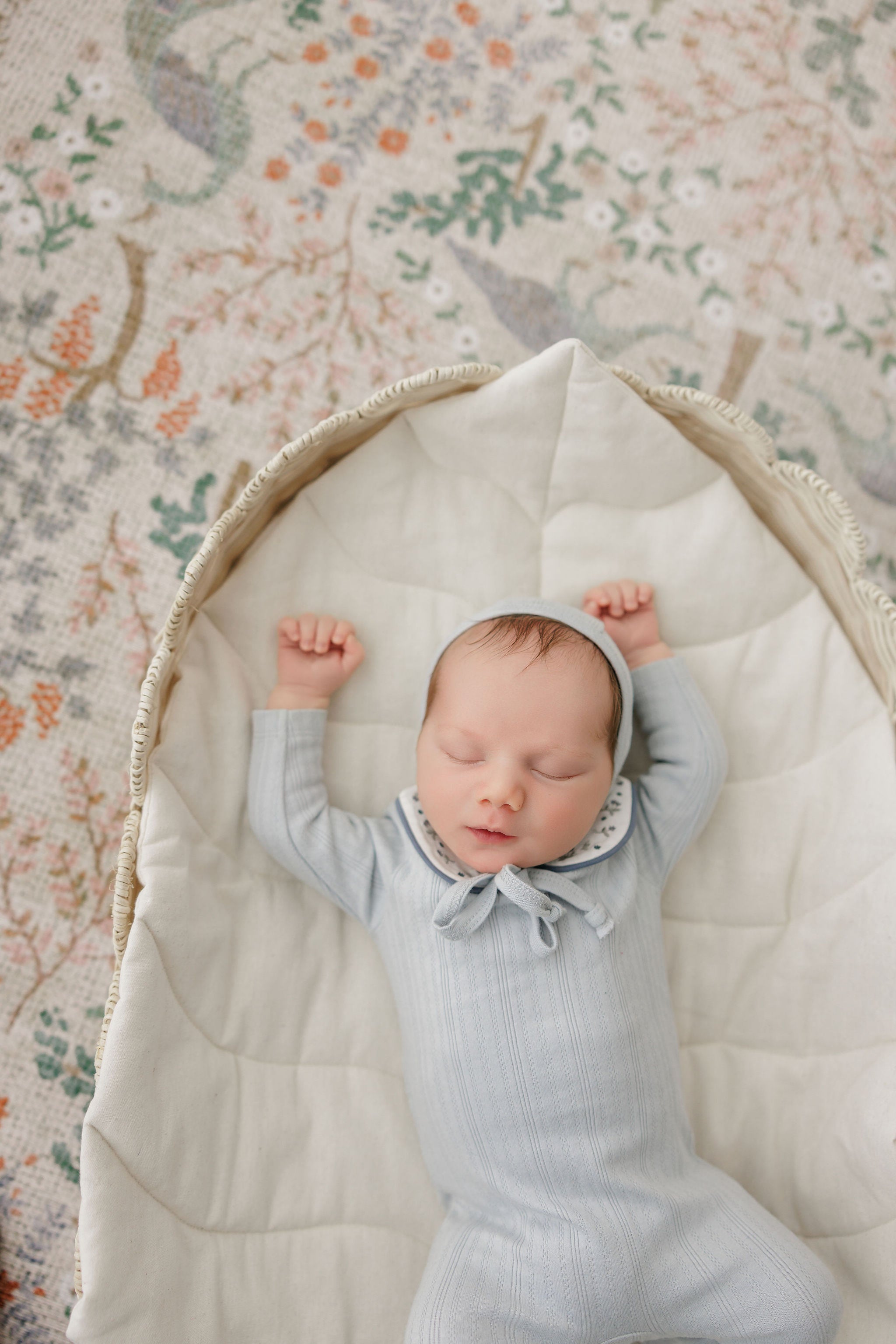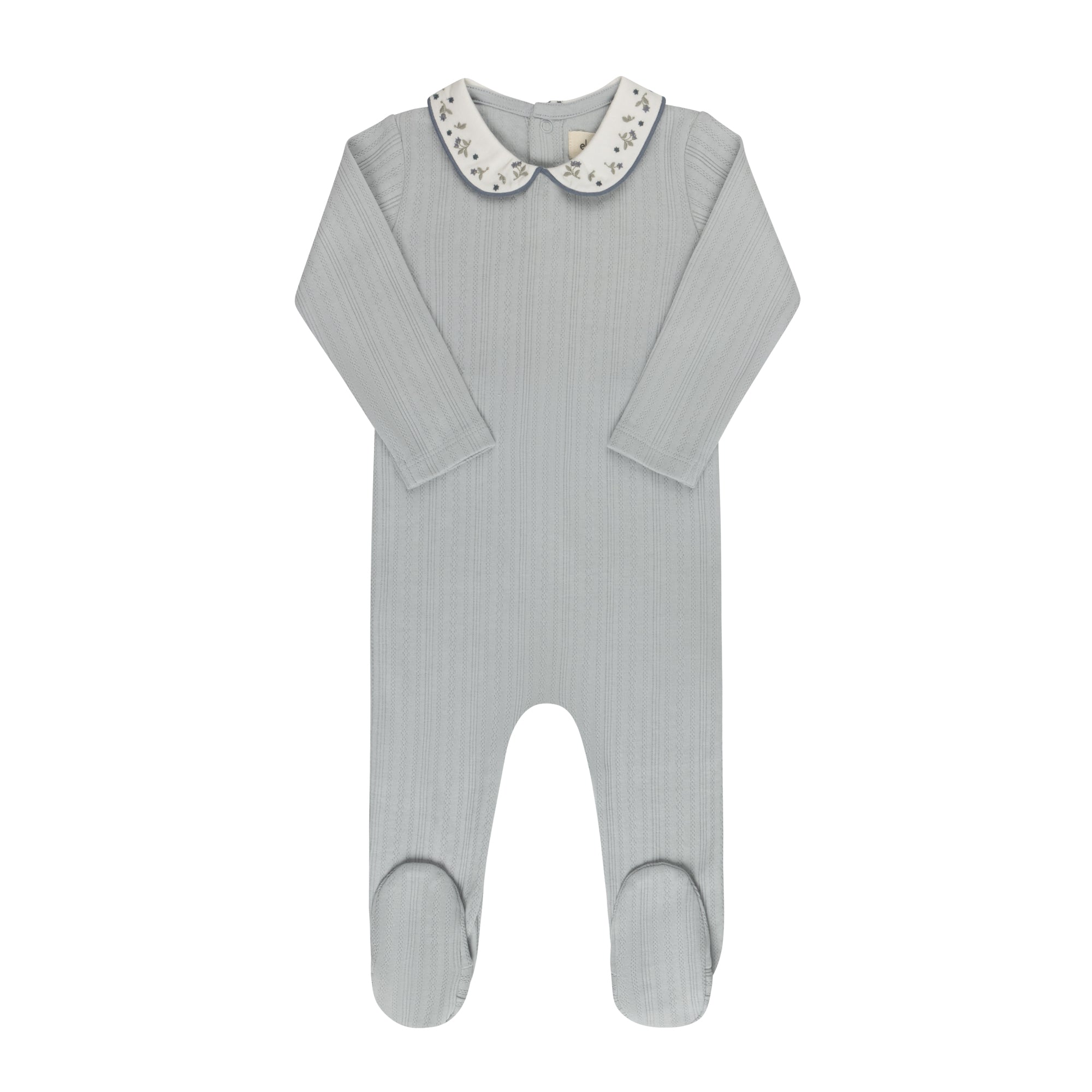 Baby Boy Footie – Blue – Floral Pointelle