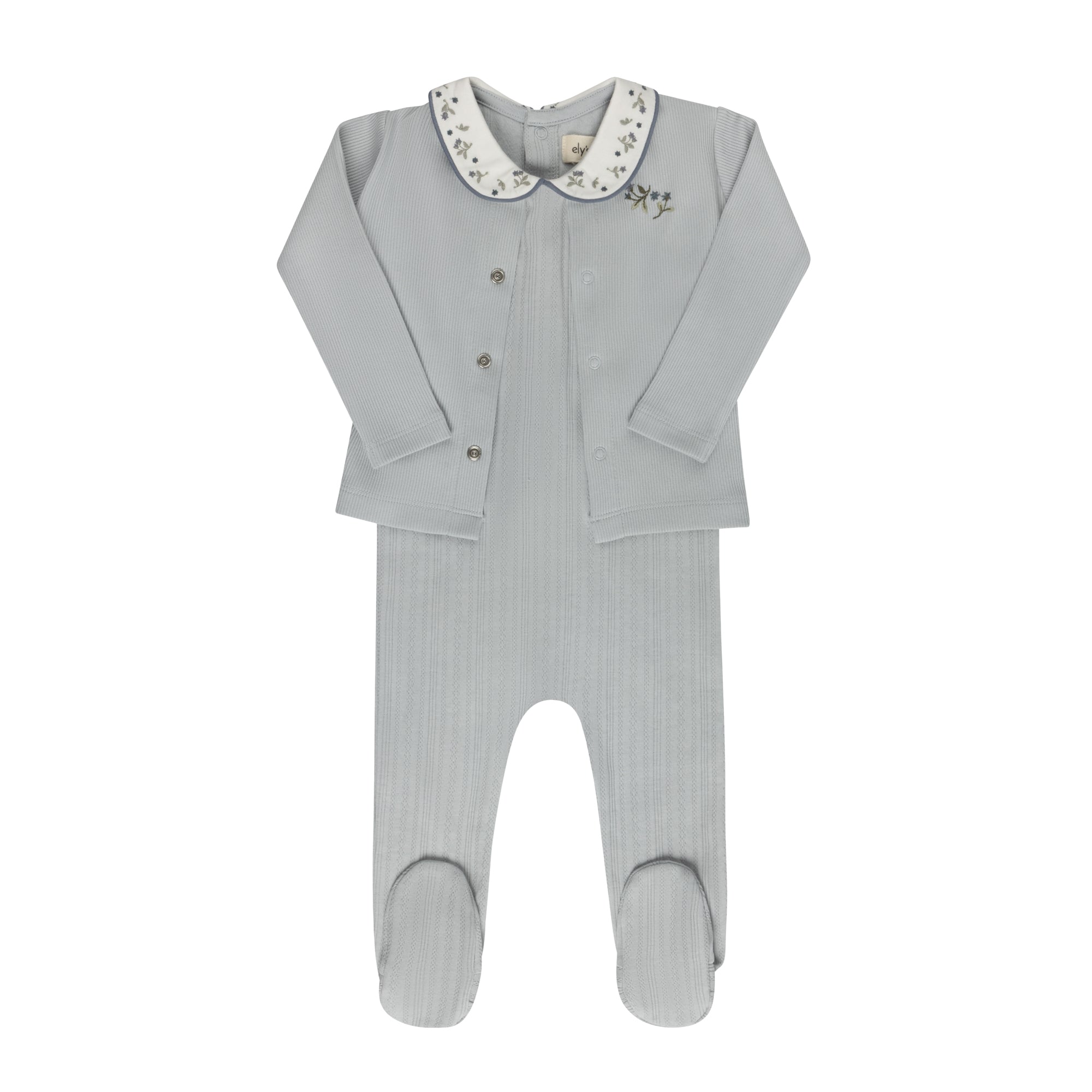 Baby Boy Footie – Blue – Embroidered Collar