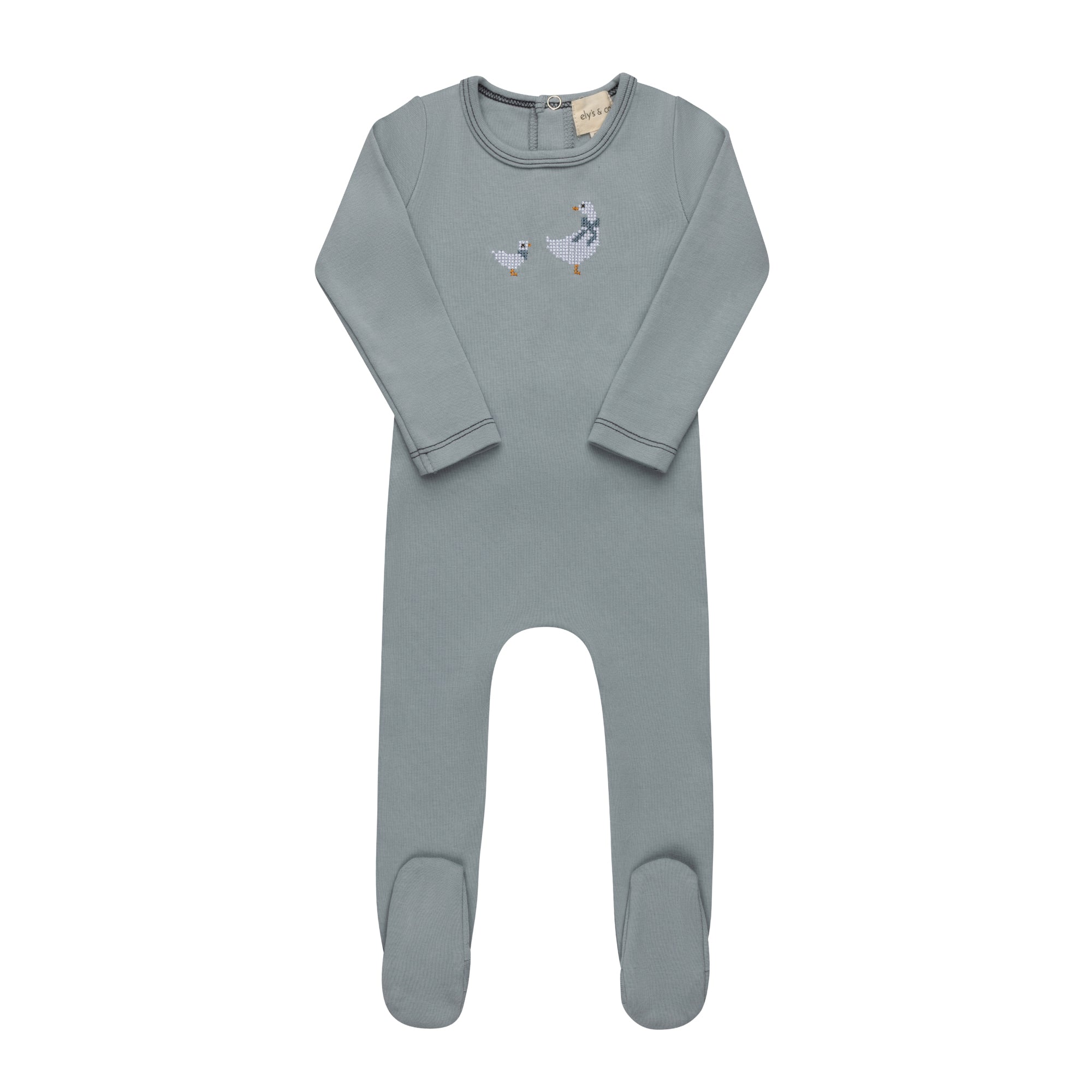 Baby Boy Footie – Blue – Cross Stitch Duckling
