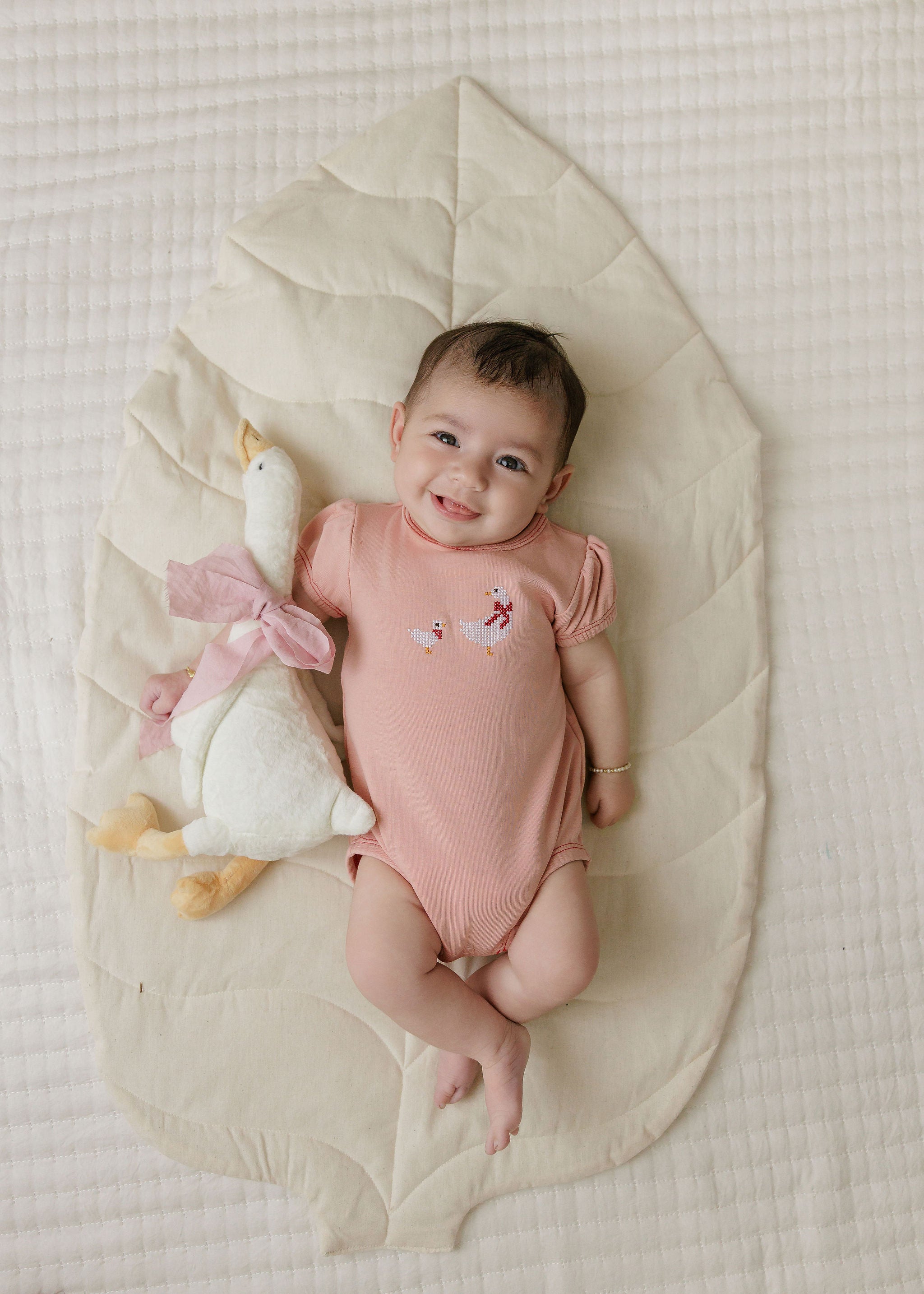 Baby Girl Footie – Ivory Pink – Cross Stitch Duckling