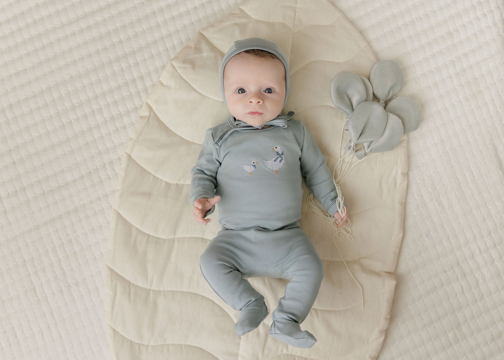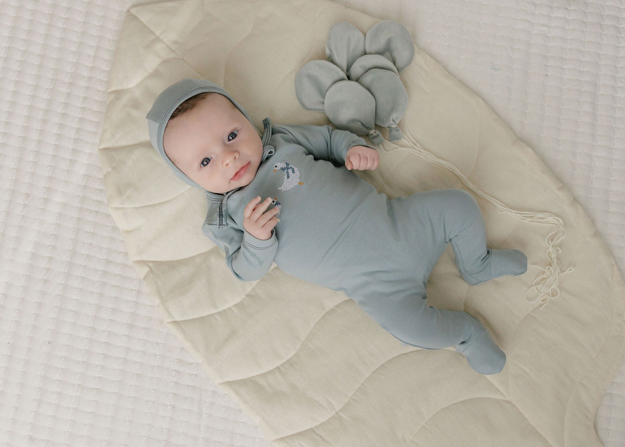 Baby Boy Footie – Ivory Blue – Playful Mouse