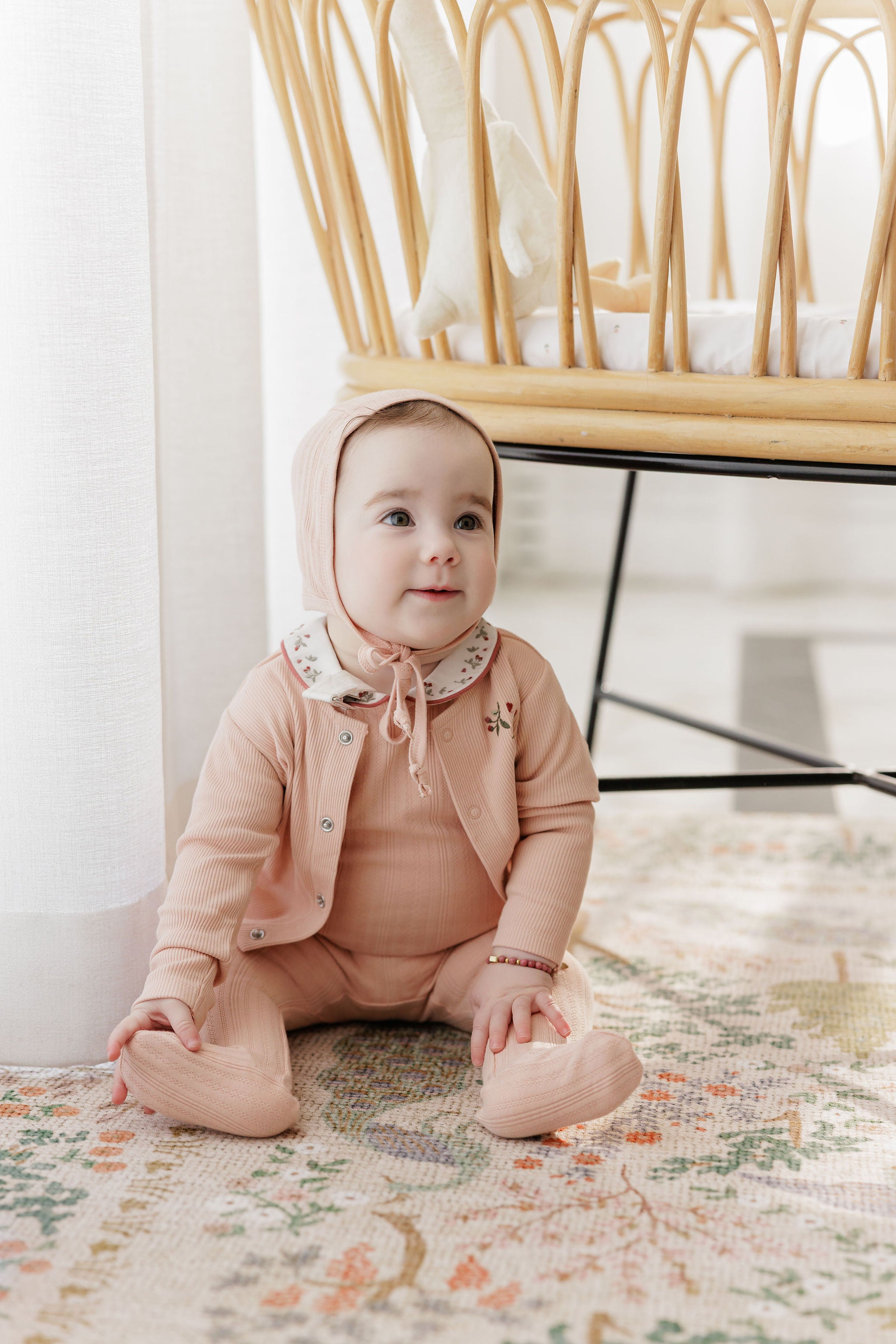 Baby Girl Footie and Bonnet – Pink – Playful Mouse