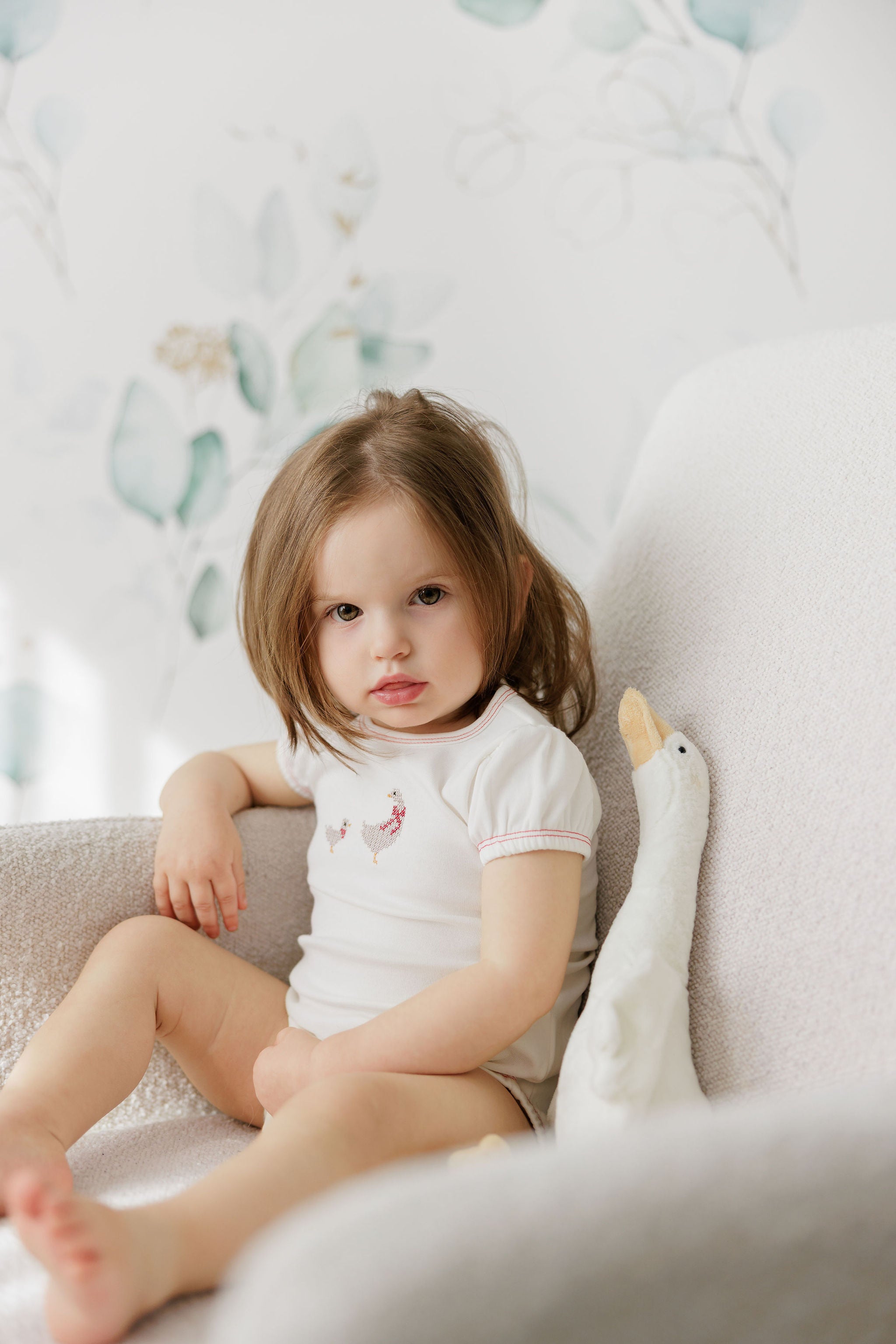 Baby Girl Romper - Ivory - Embroidered Florals