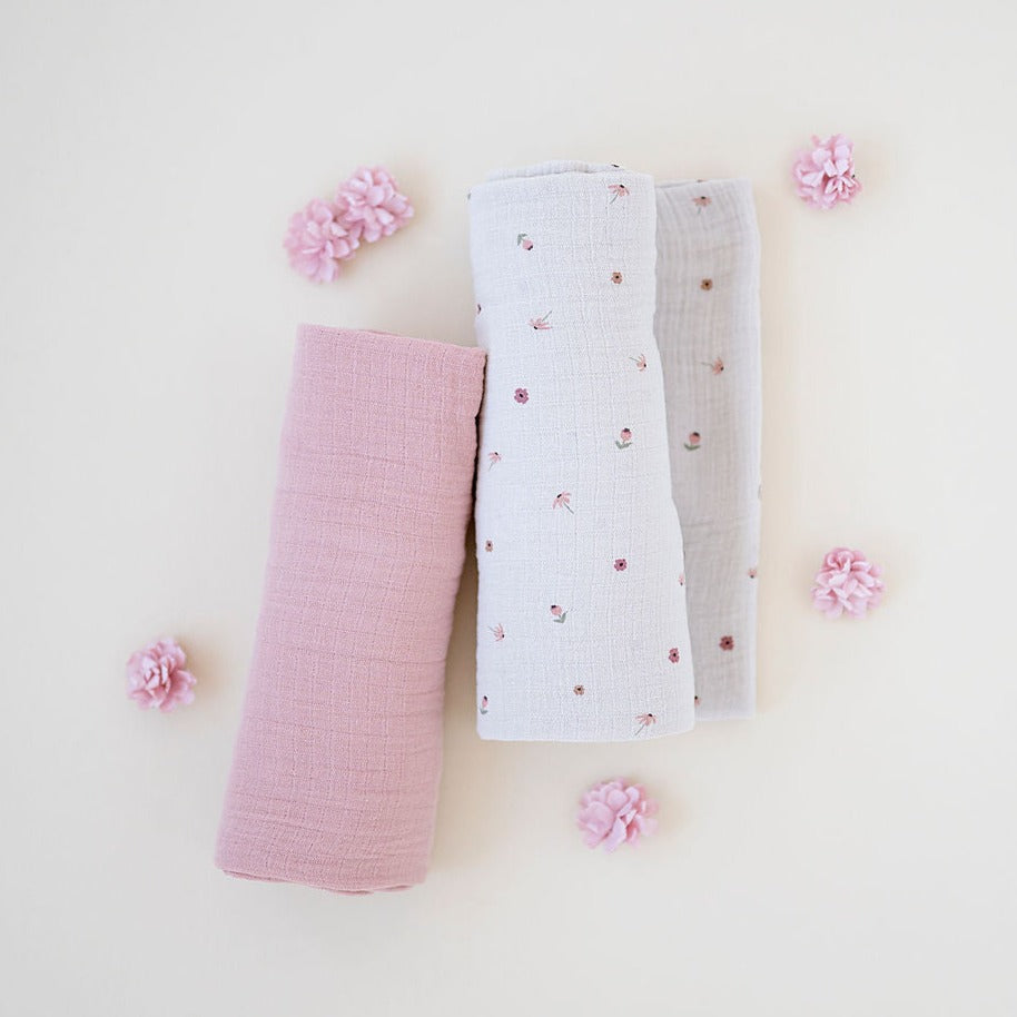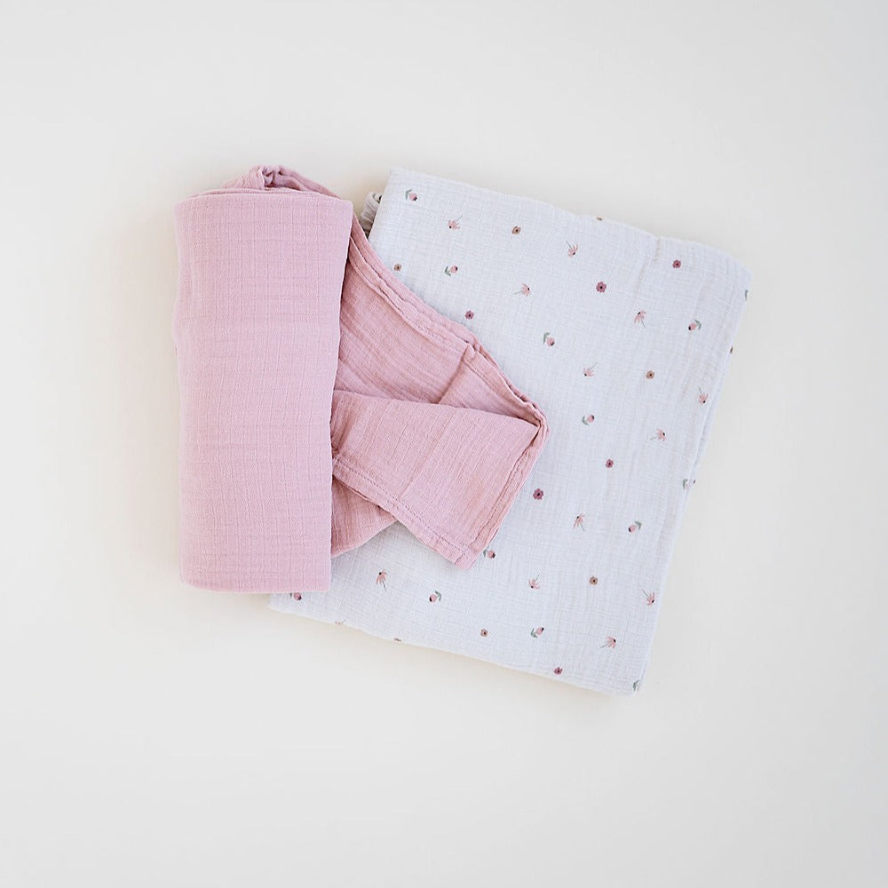 2 Pack Cotton Muslin Swaddle Blanket - Pink Garden Flower