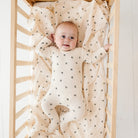 • Swaddling creates a cozy and soothing, womb-like atmosphere to help infants sleep more sound by reducing the startle reflex. We make our muslin swaddle blankets from a single layer of material, composed of 100% cotton, which helps reduce the risk of overheating and promotes a longer night’s sleep. Swaddling may soothe a crying baby and lead to a healthier night’s sleep, making this set an essential item for your Baby Registry.