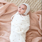 Swaddling creates a cozy and soothing, womb-like atmosphere to help infants sleep more sound by reducing the startle reflex. We make our muslin swaddle blankets from a single layer of material, composed of 100% cotton, which helps reduce the risk of overheating and promotes a longer night’s sleep. Swaddling may soothe a crying baby and lead to a healthier night’s sleep, making this set an essential item for your Baby Registry.