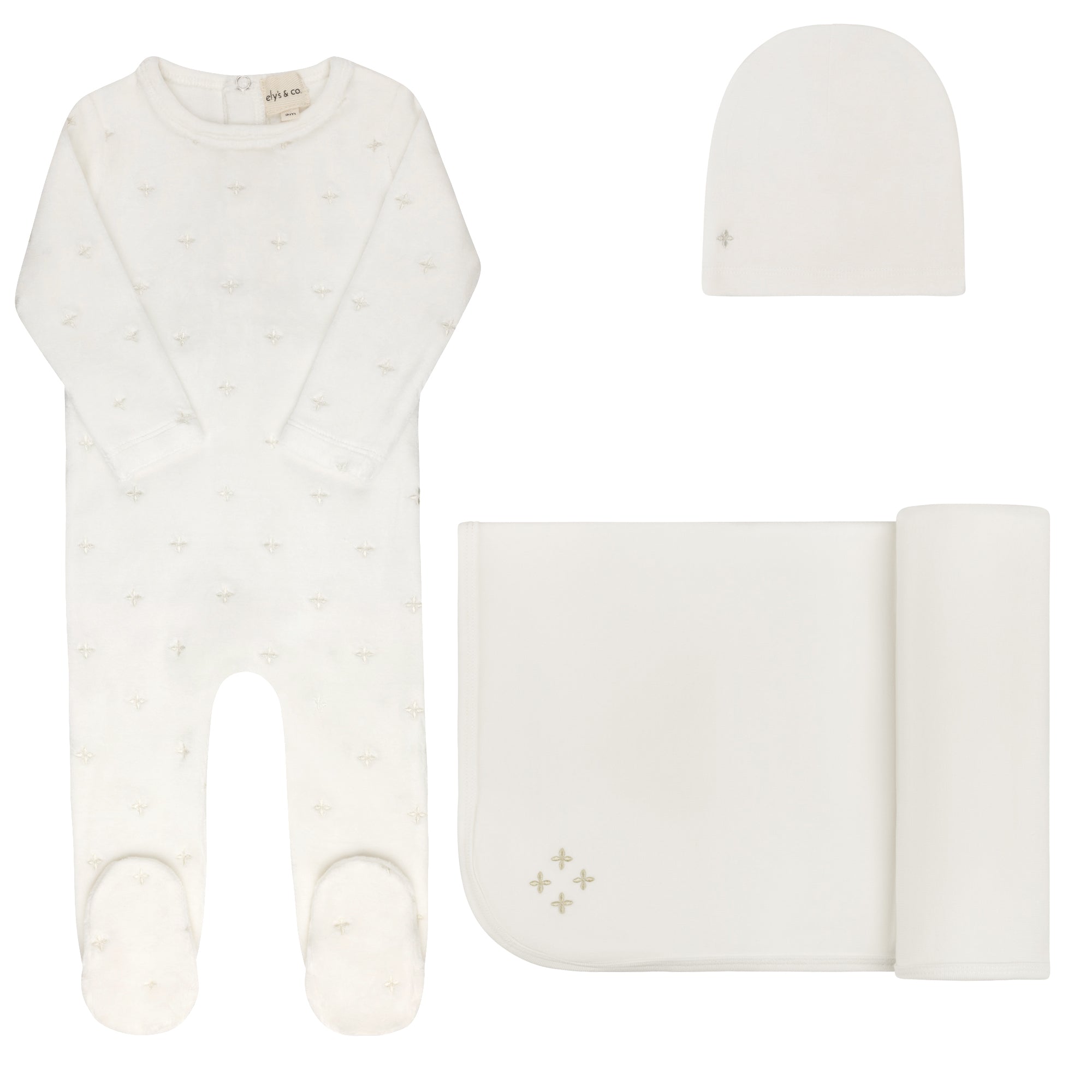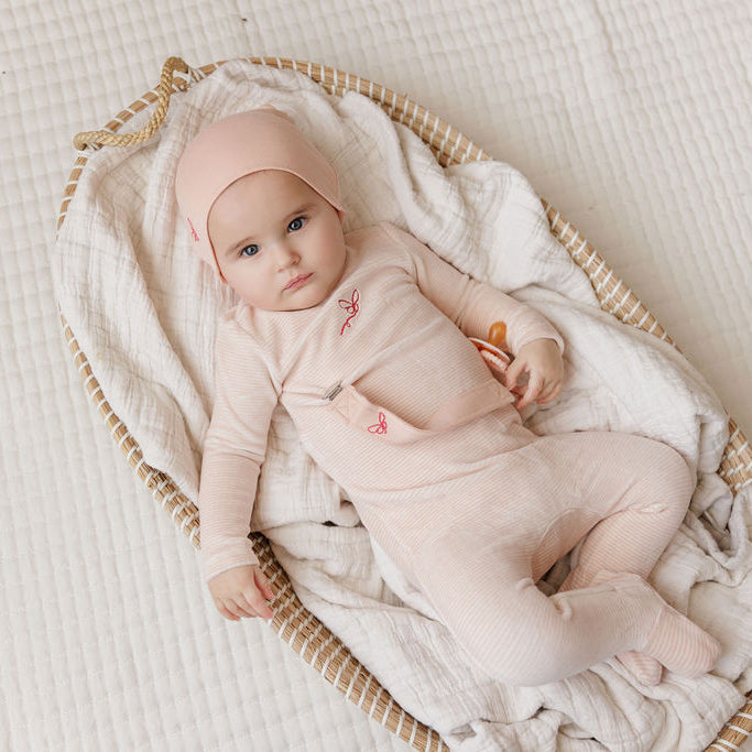 Ely’s & Co take me home sets are soft, practical, and thoughtfully made for baby’s earliest days. These classic baby layette sets, featuring our signature stretchys with a coordinating bonnet or beanie and blanket, create a beautiful coordinated set perfect for gifting and for bringing baby home from the hospital and the days that follow.