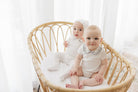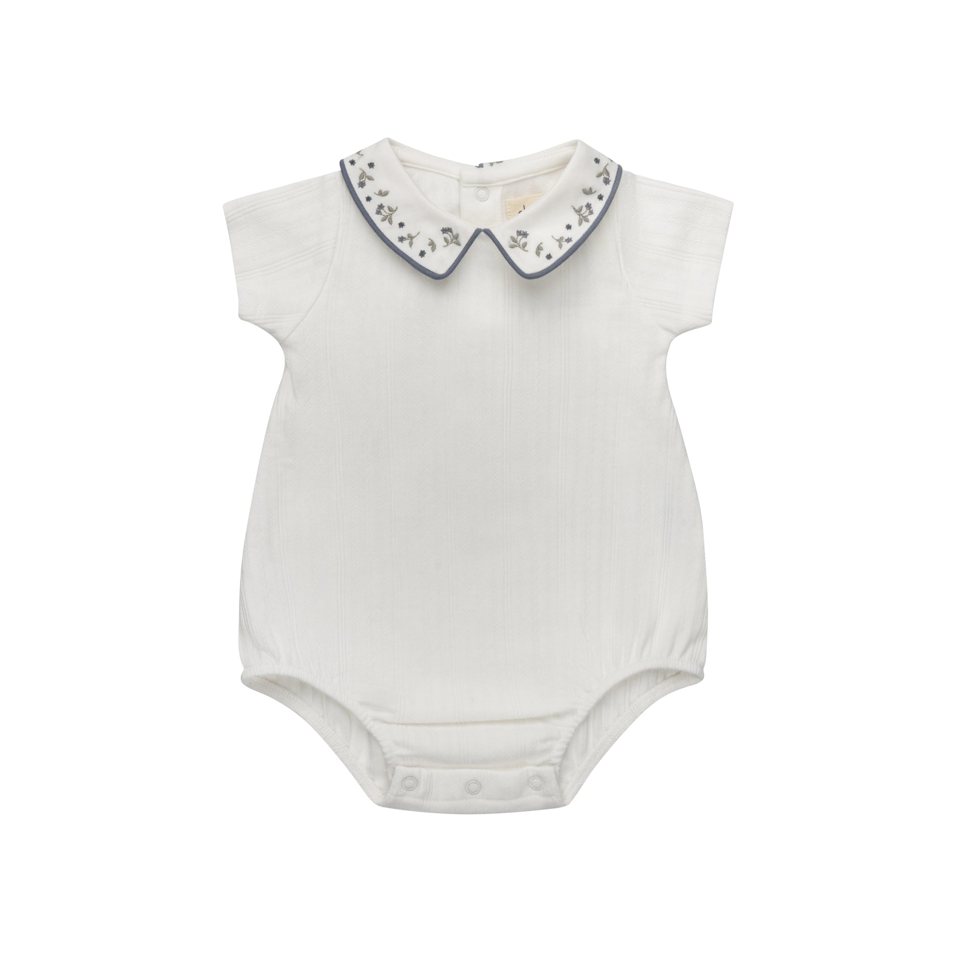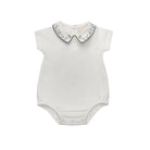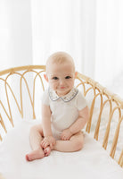 Boys Romper – Ivory Blue – Embroidered Collar