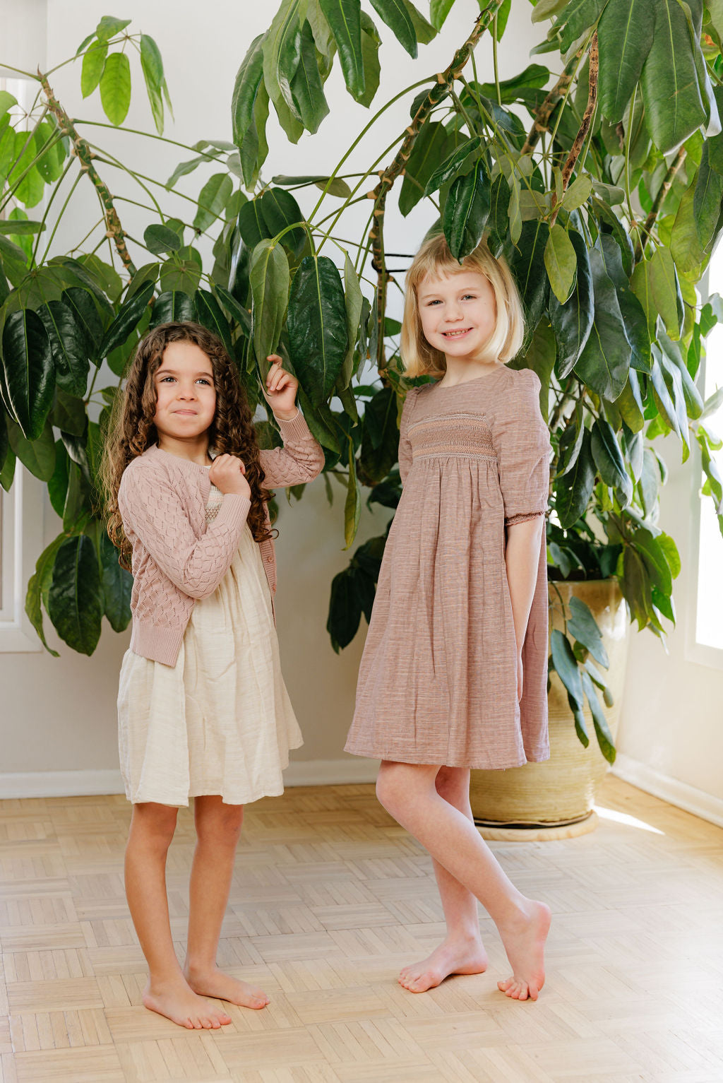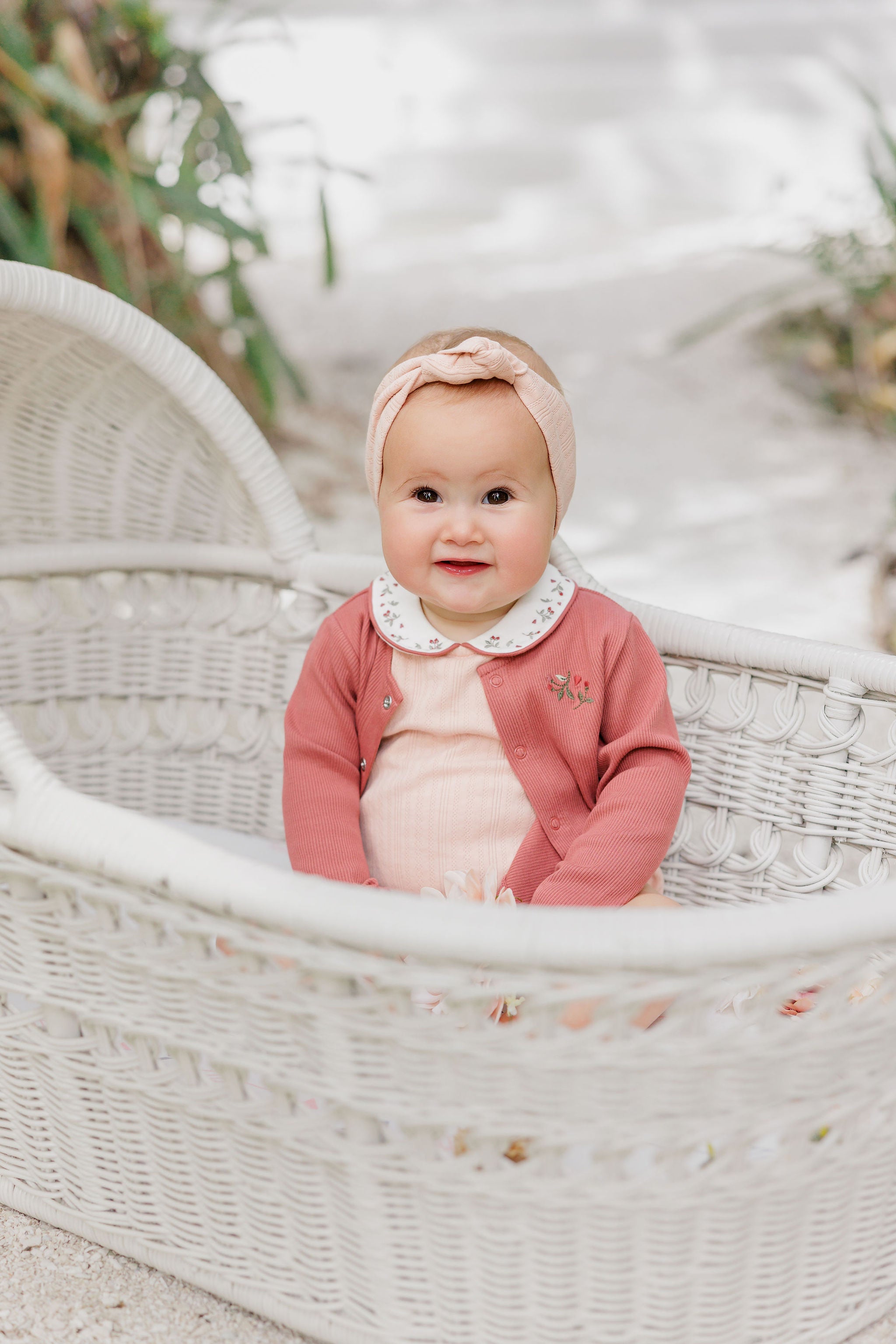 Girls Cardigan – Ivory Pink – Floral Rib