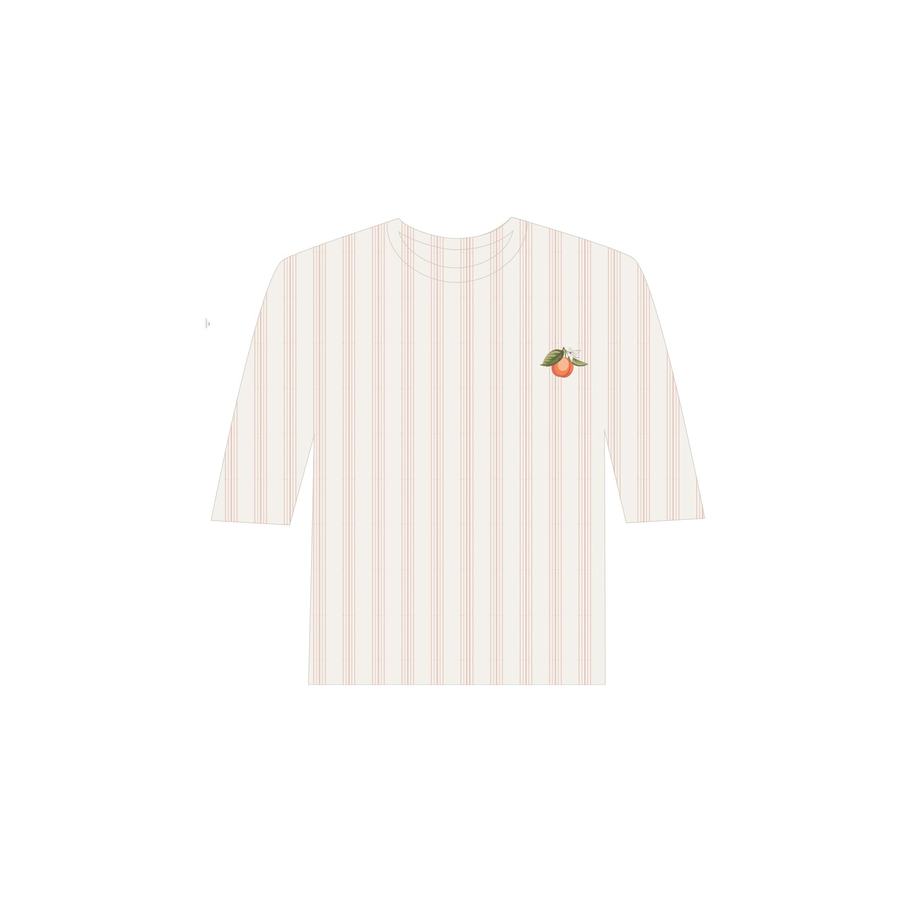 A soft striped tee featuring a sweet printed fruit motif for effortless summer styling.