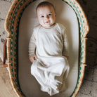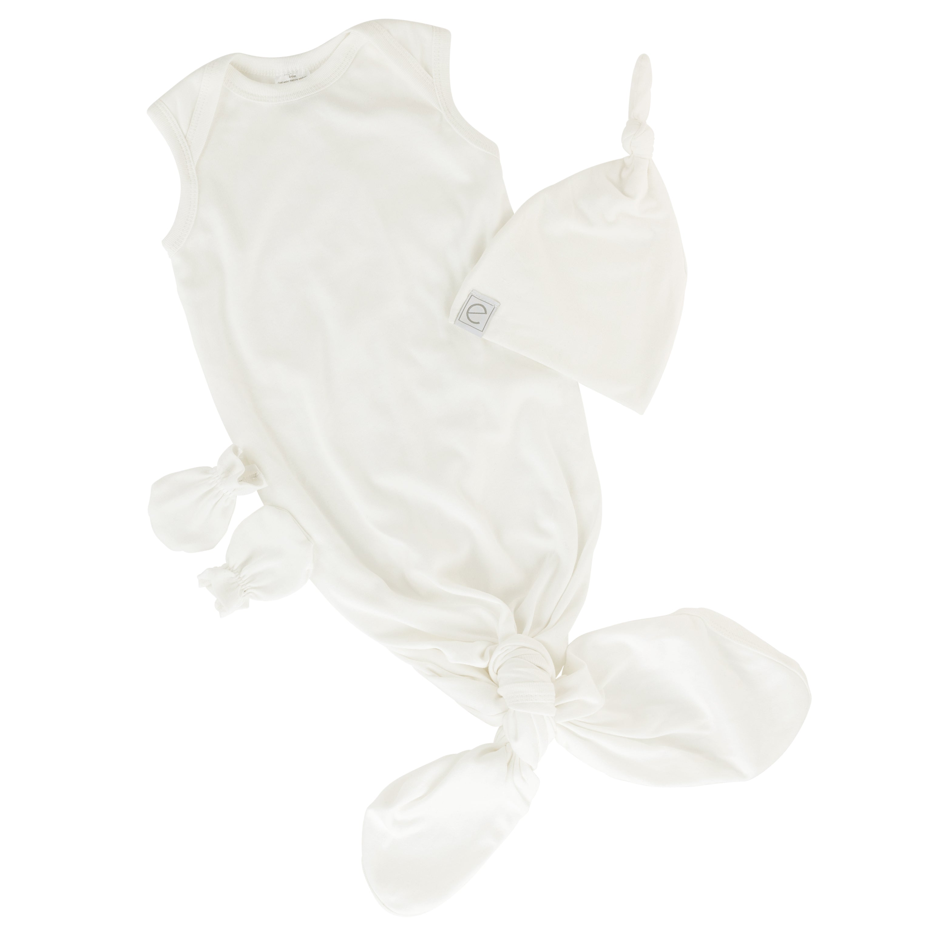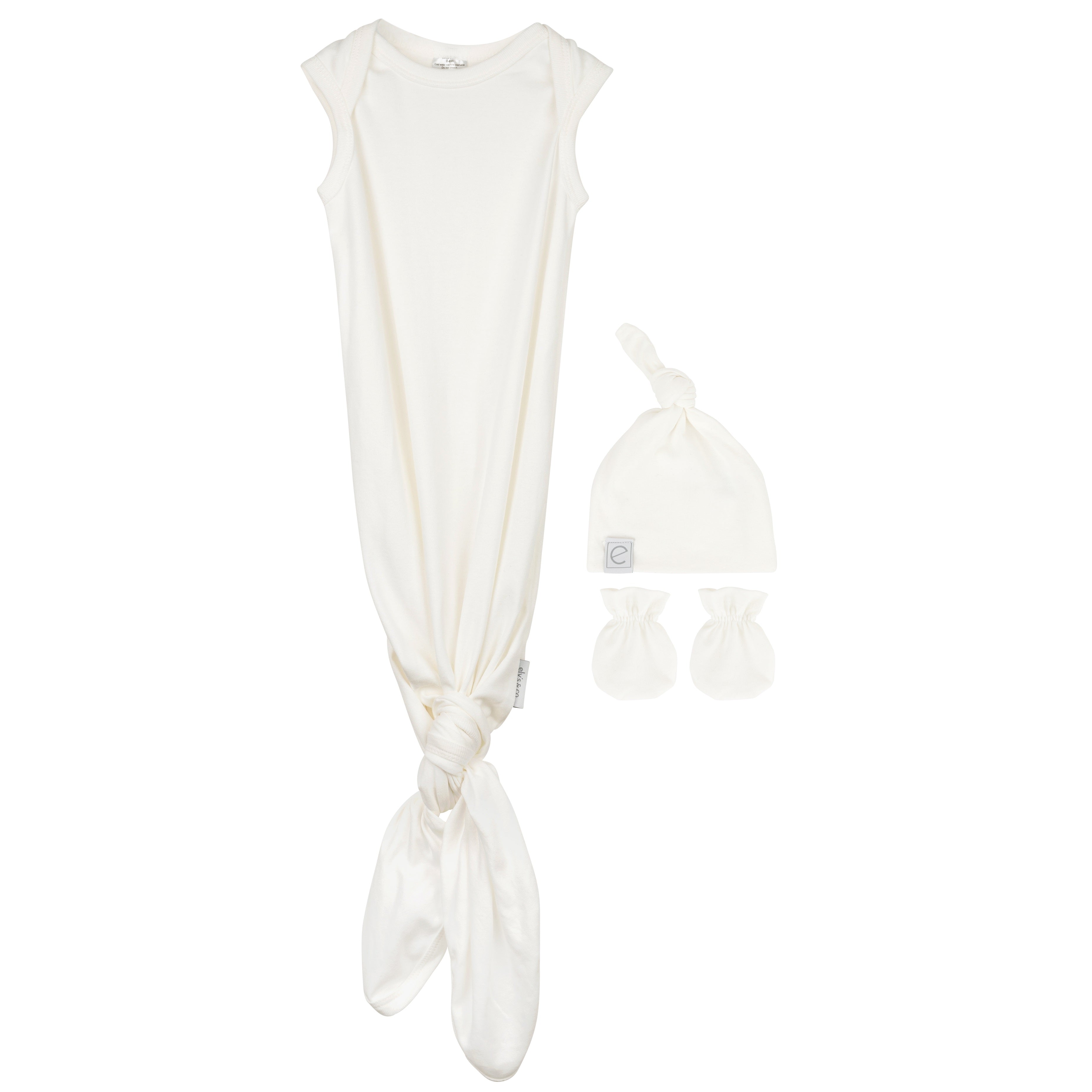 - Stylish Safety Solutions: Designed with a matching knot hat as well as a pair of no-scratch mittens to ensure baby’s sensitive skin stay cozy and protected and hands are warm and snug while safeguarding their delicate skin from scratches all through the night. All in our modern and neutral ivory solid, and made from buttery soft cotton, this practical and charming matching sleep set is the must-have gift for the newborn baby in your life.