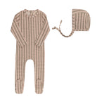 Baby Girl Footie and Bonnet – Pink – Linear Leaf