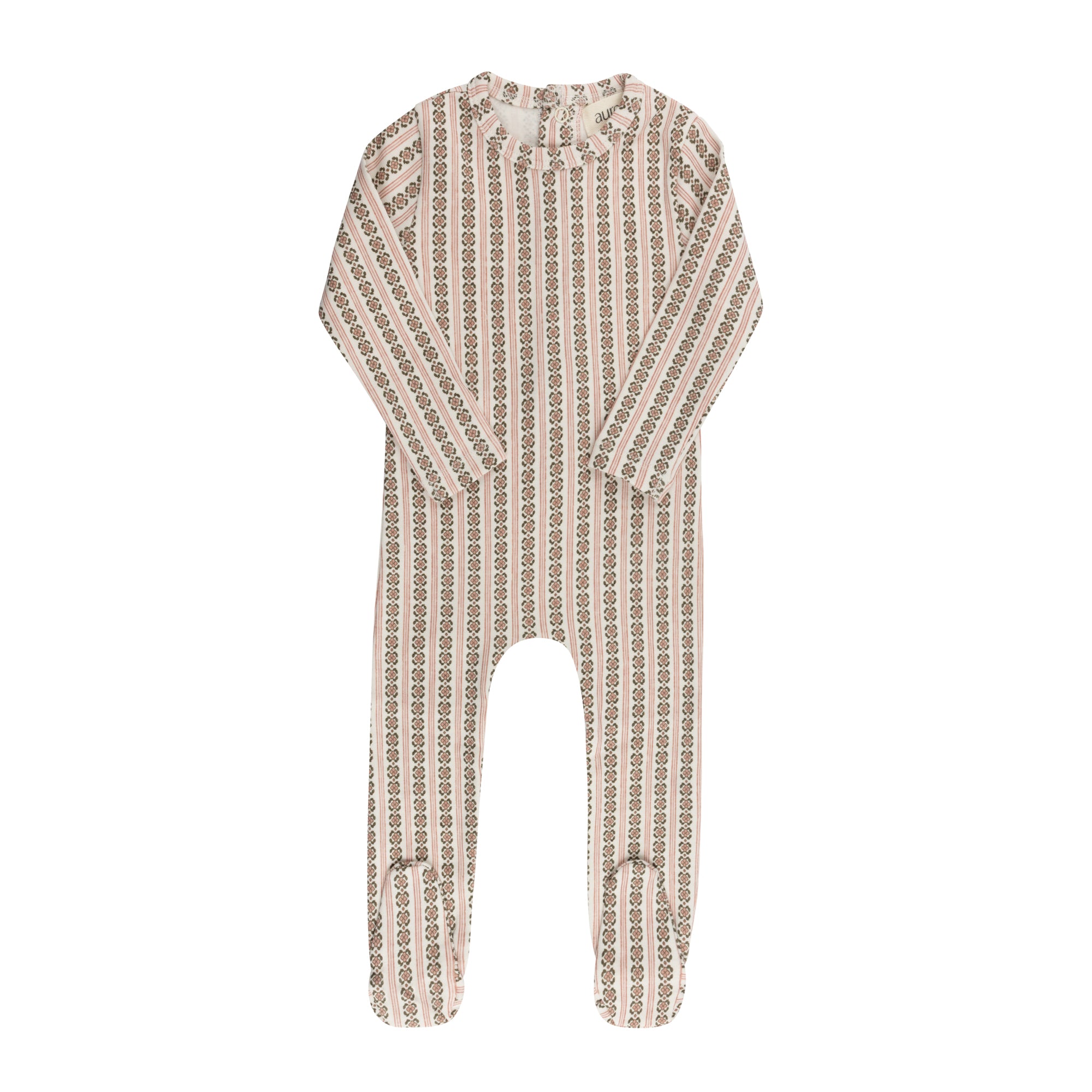 Baby Girl Footie – Ivory Pink – Linear Leaf