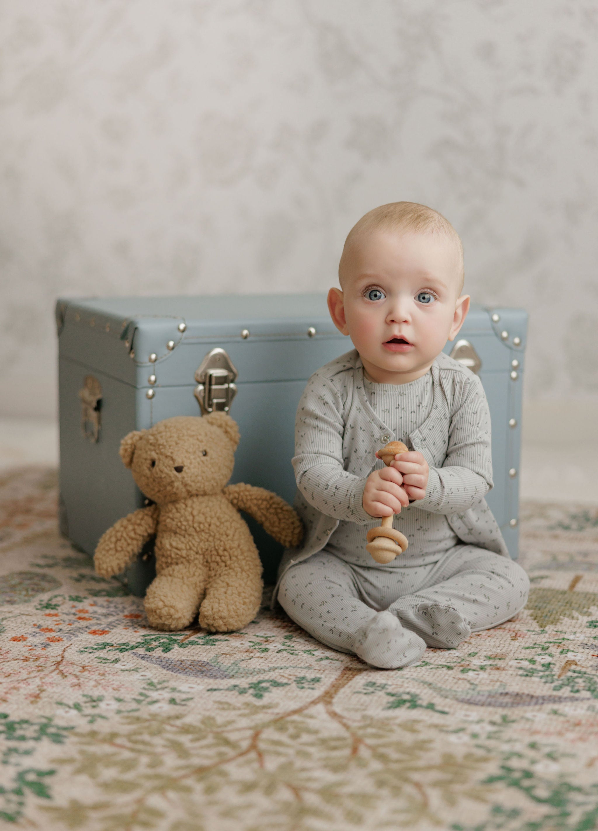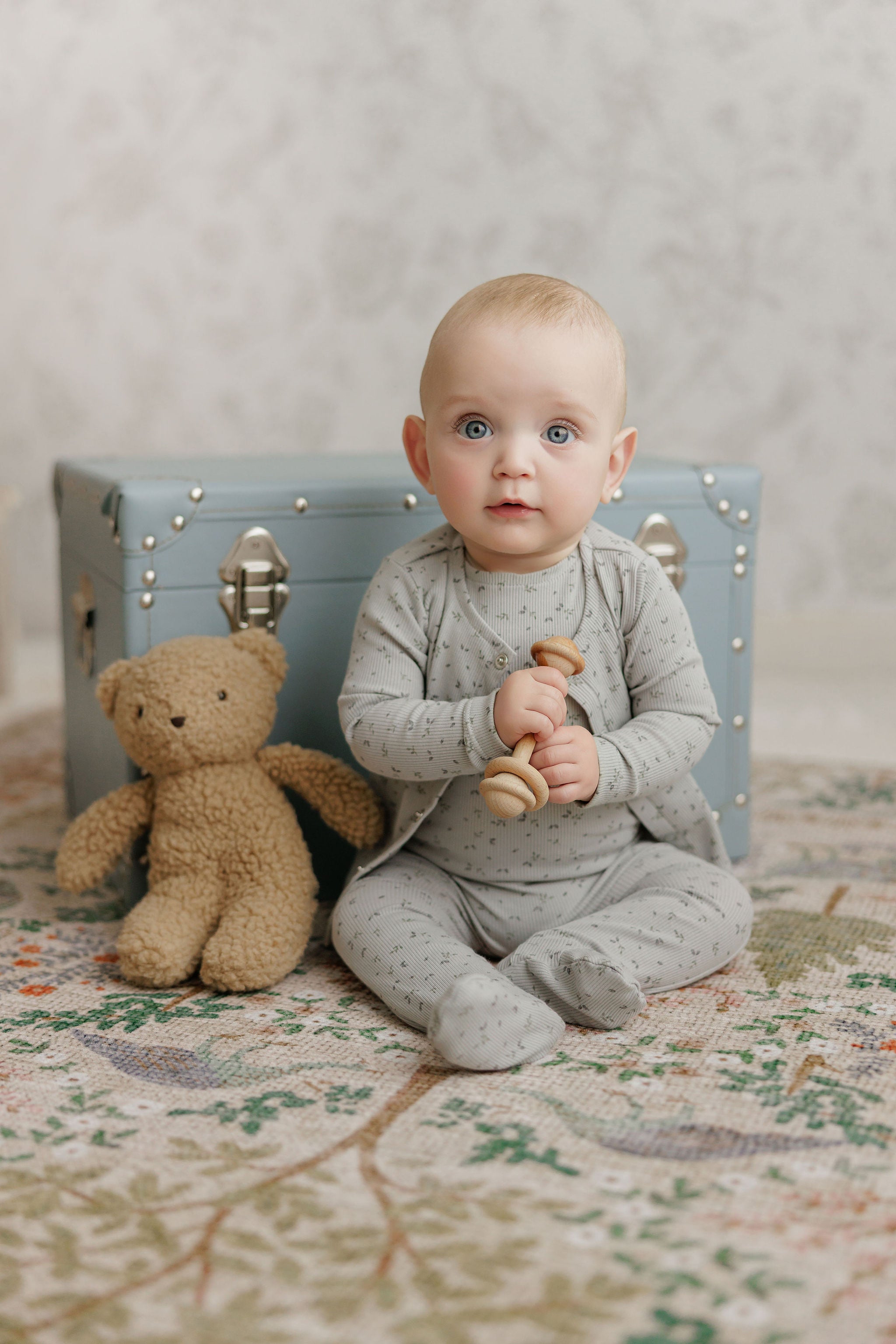 This lightweight cardigan is designed for easy layering and a polished finish. It pairs perfectly with the footie or romper for a coordinated, effortless outfit.