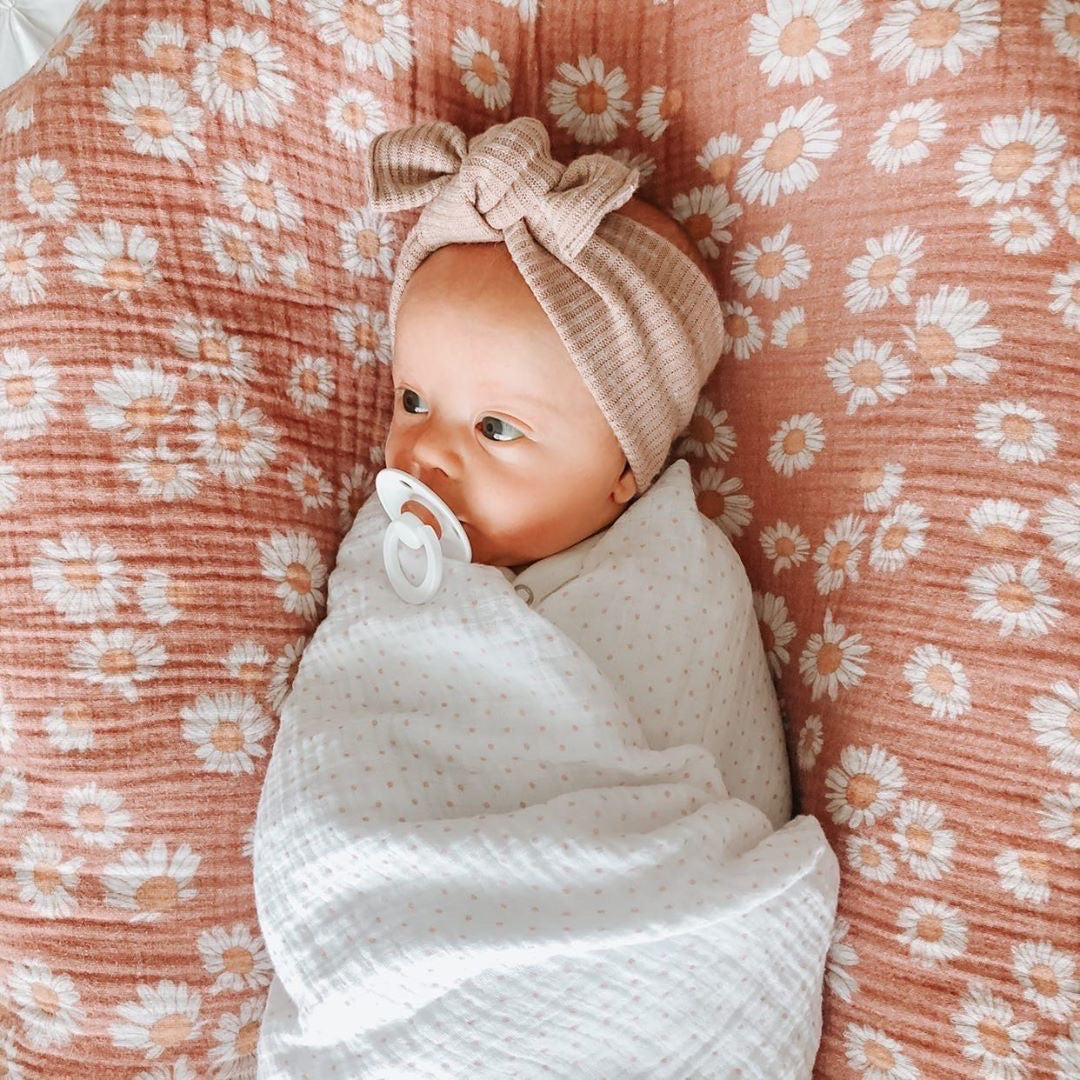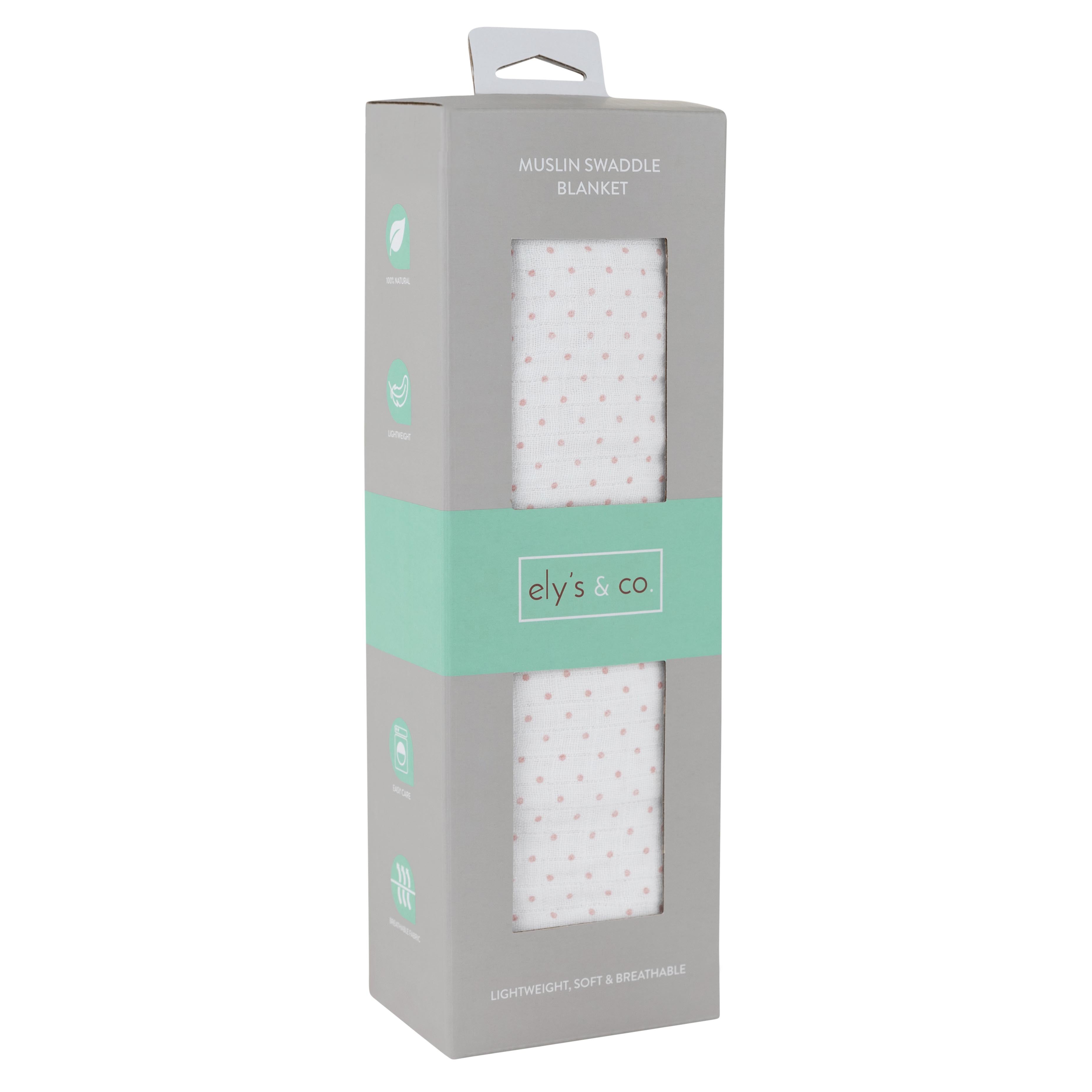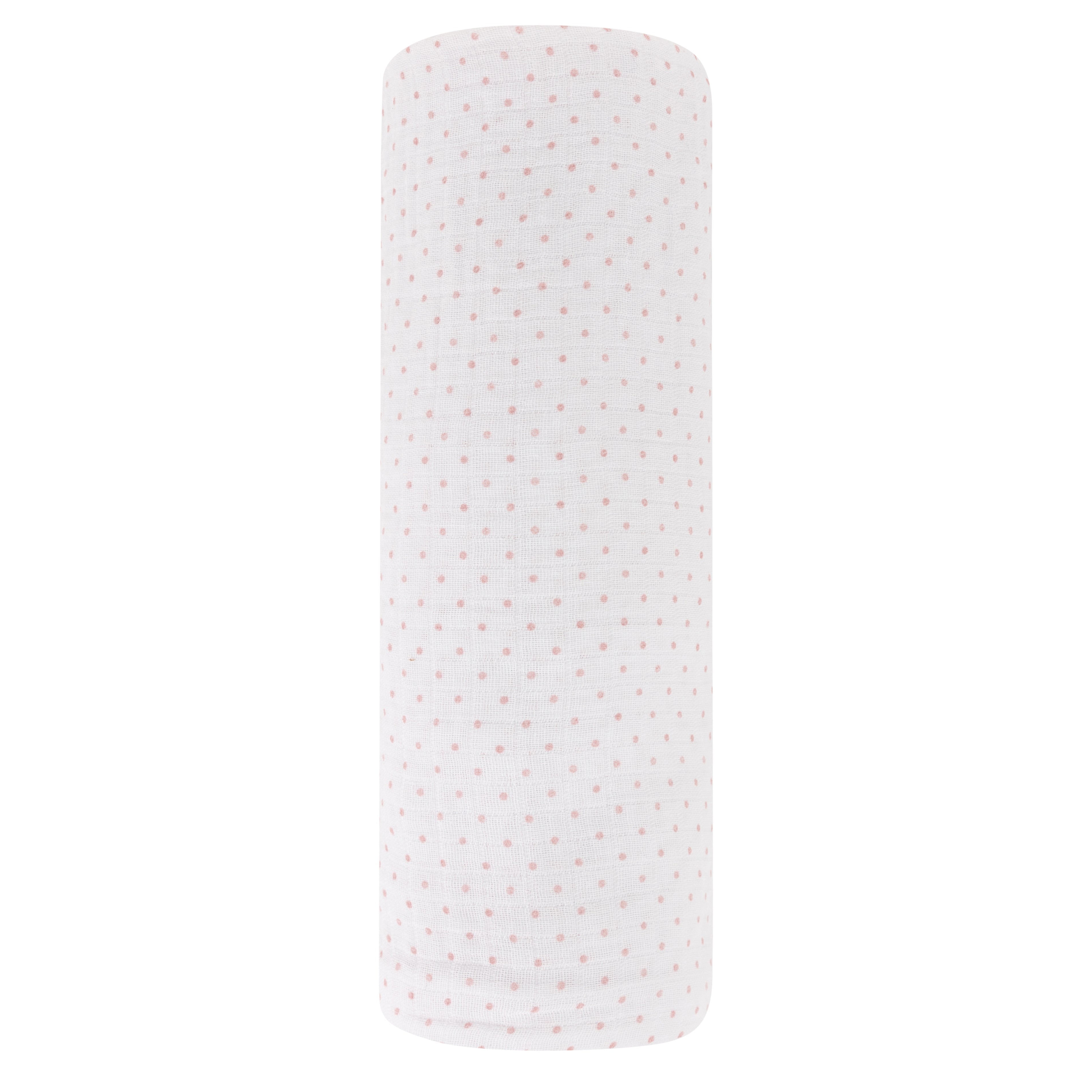 - This single pack features a feminine and chic pink pin dot design printed on fresh white cotton muslin. This minimalist design will complement your baby girl’s nursery décor. This stylish swaddle blanket bundled in our gift-ready packaging makes it a perfect baby shower present for the baby girl in your life.