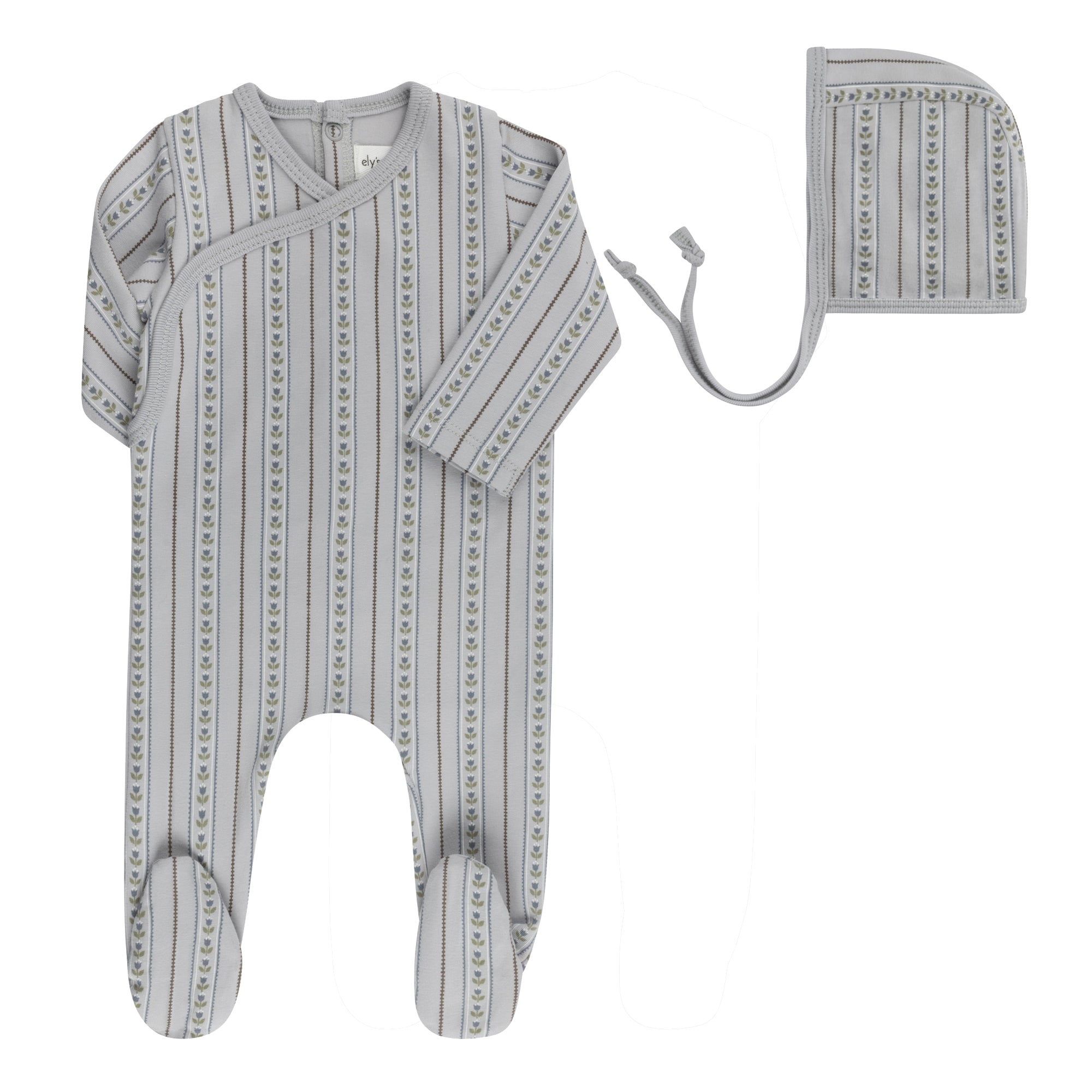 Baby Boy Footie and Bonnet - Blue - Linear Tulip