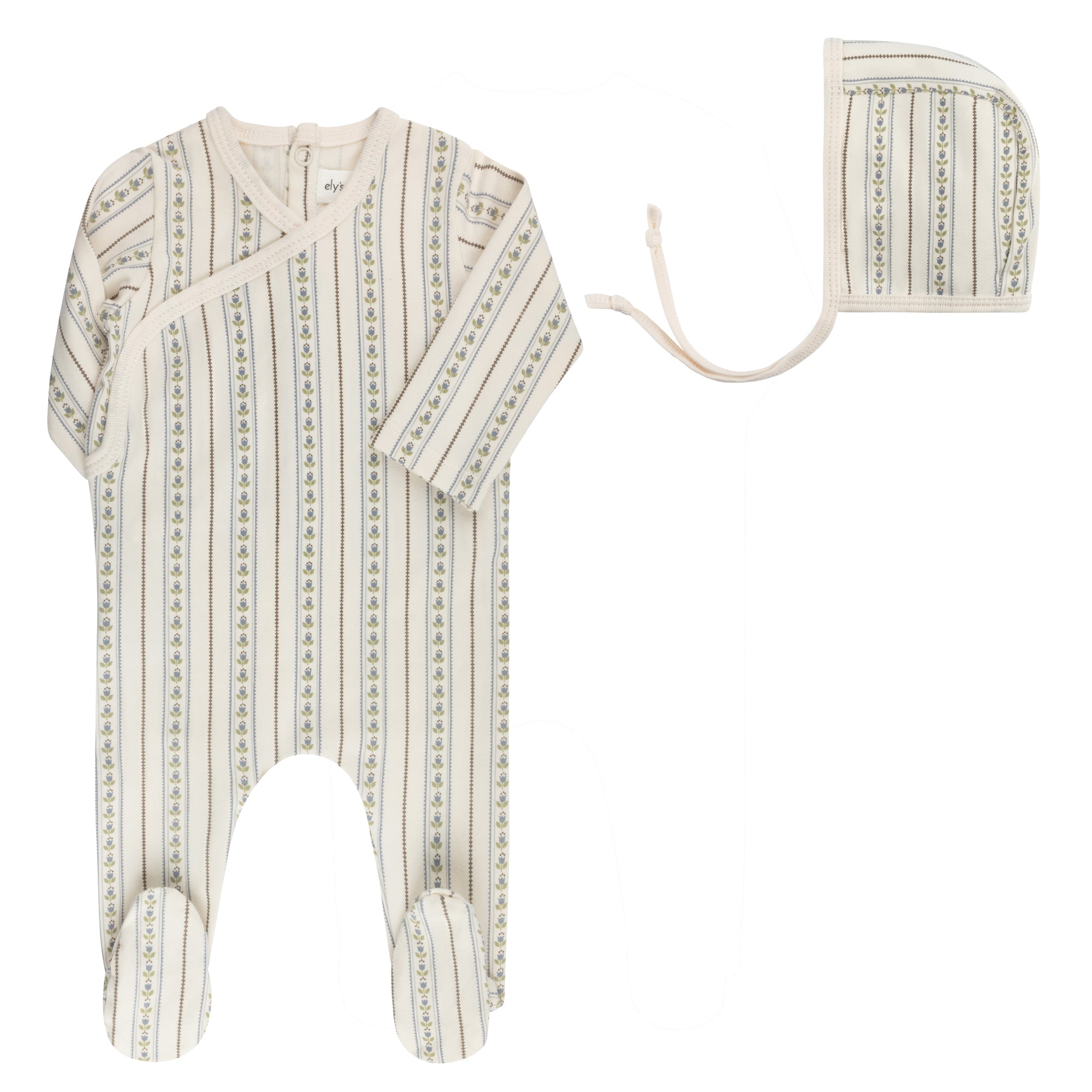 Baby Boy Footie and Bonnet - Ivory Blue - Linear Tulip