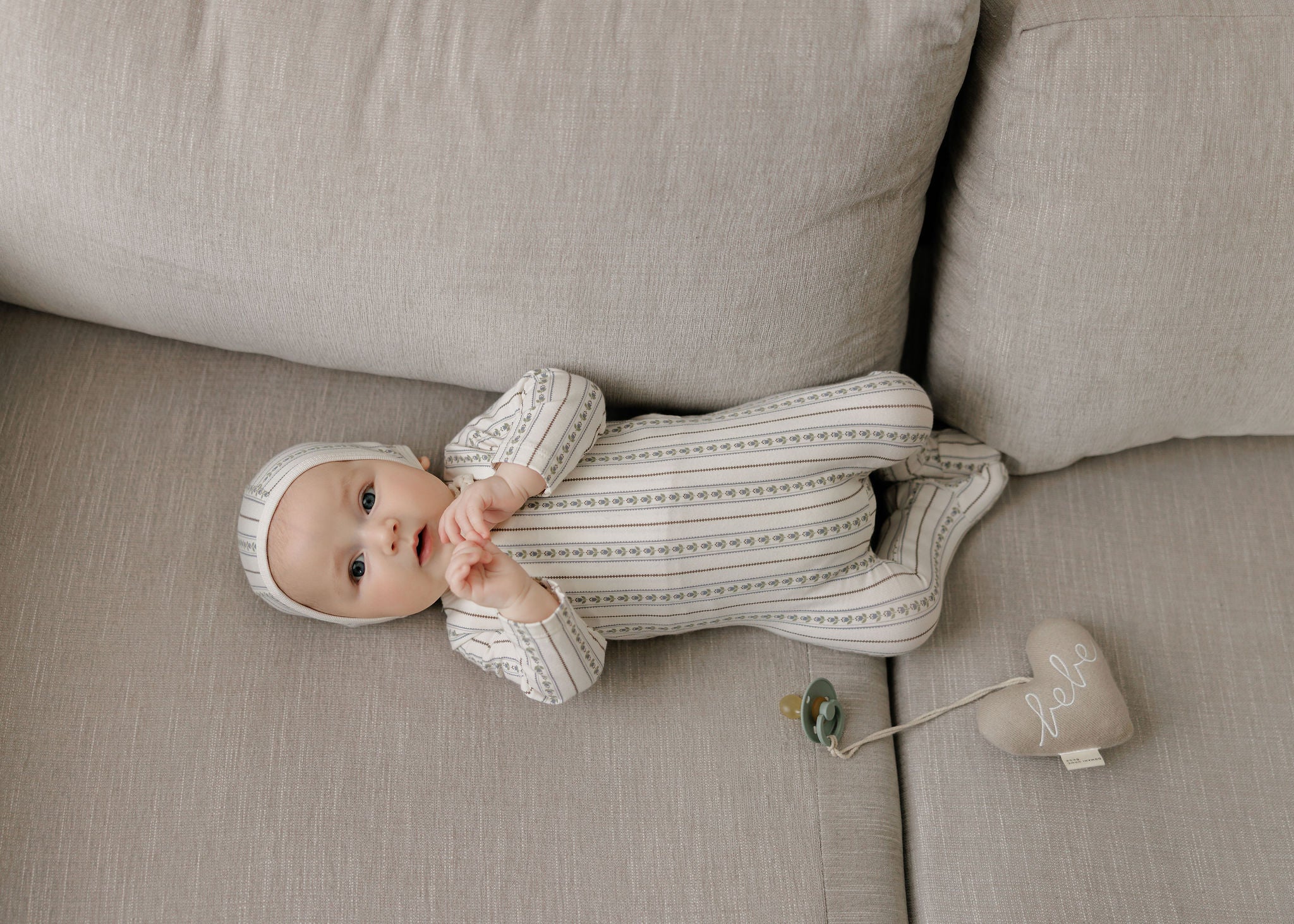Soft, delicate tulip stripes in the sweetest vintage tones, the Linear Tulip Collection is made especially for baby. Thoughtfully designed in coordinating pieces, each style is crafted with a gentle stretch for the coziest, cuddliest fit.