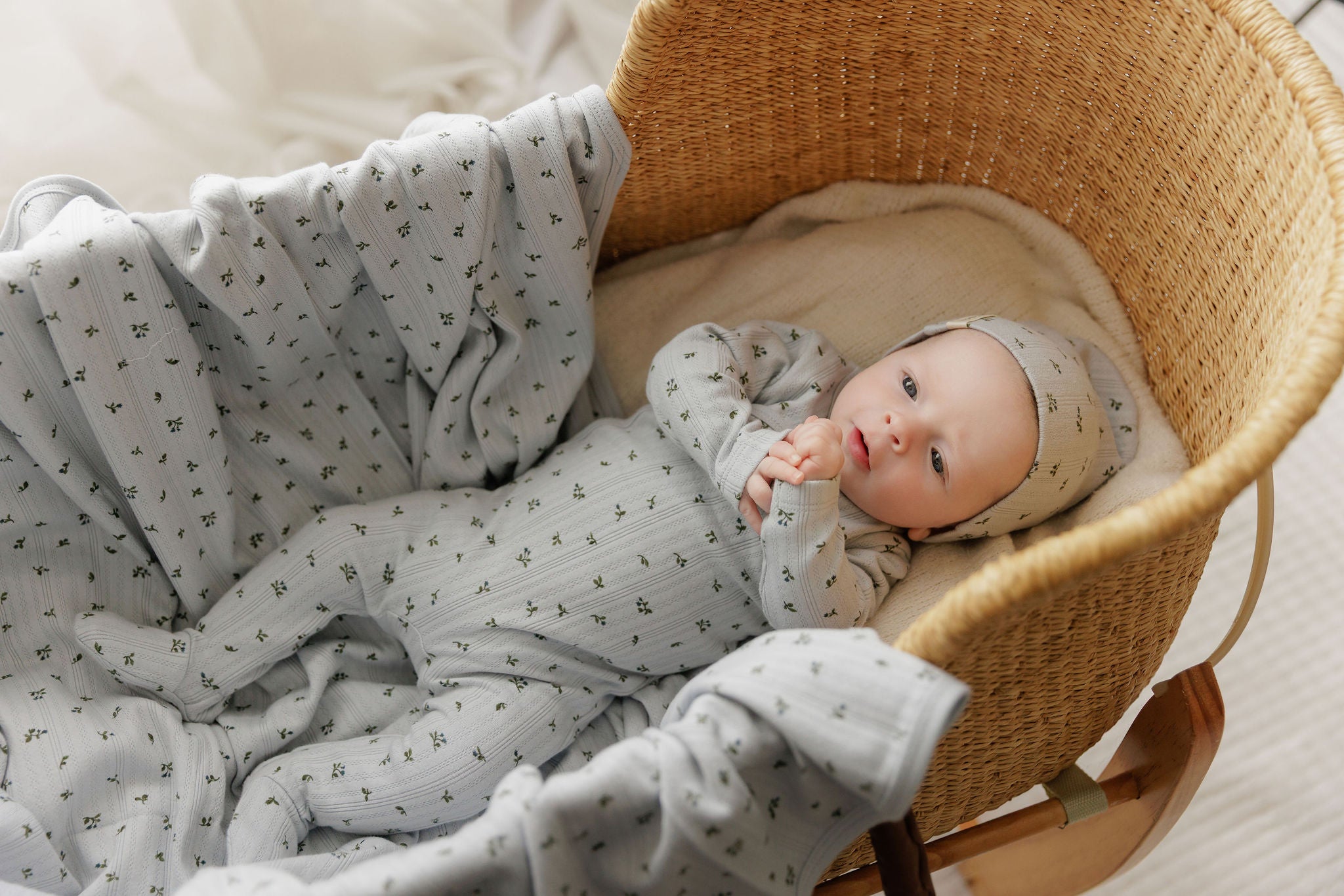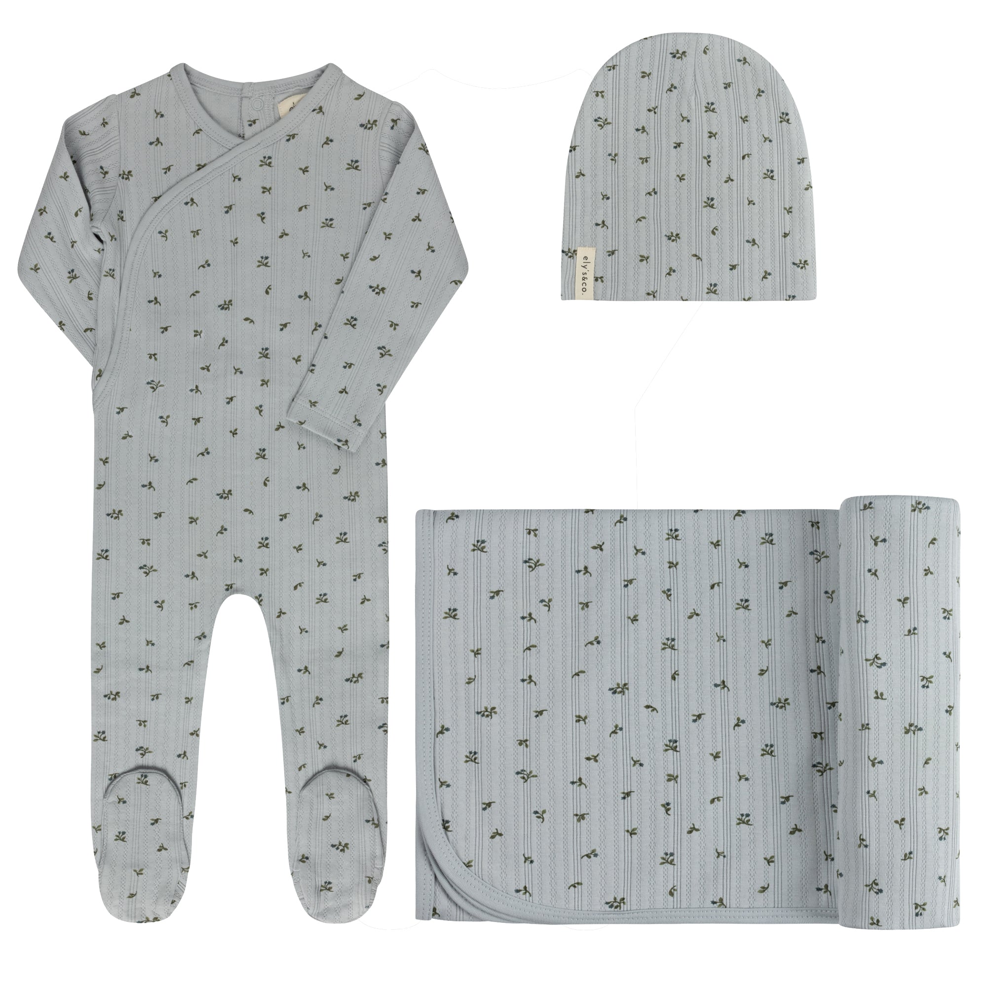 Baby Boy Layette Set – Blue – Floral Pointelle
