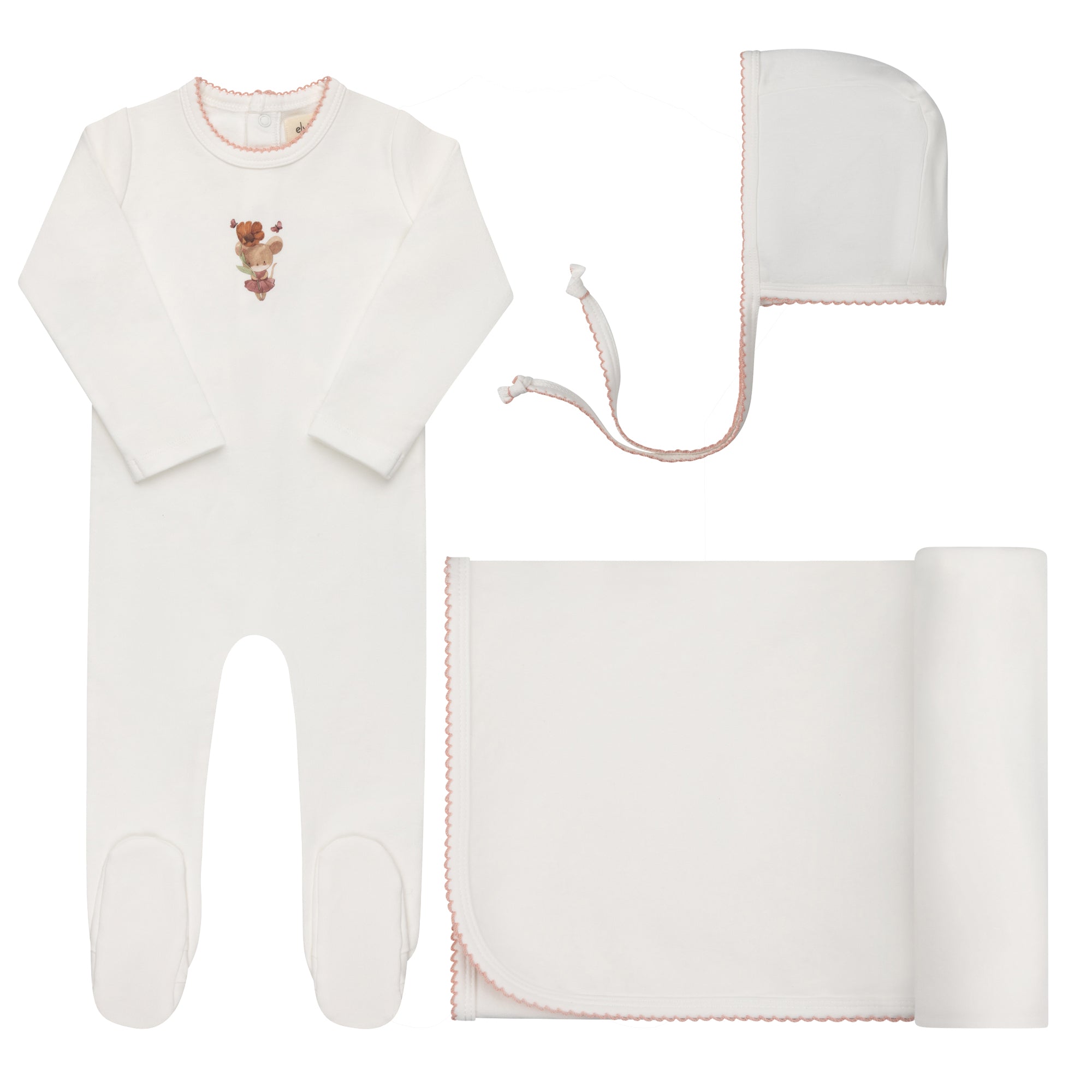 Baby Girl Layette Set – Ivory Pink – Playful Mouse