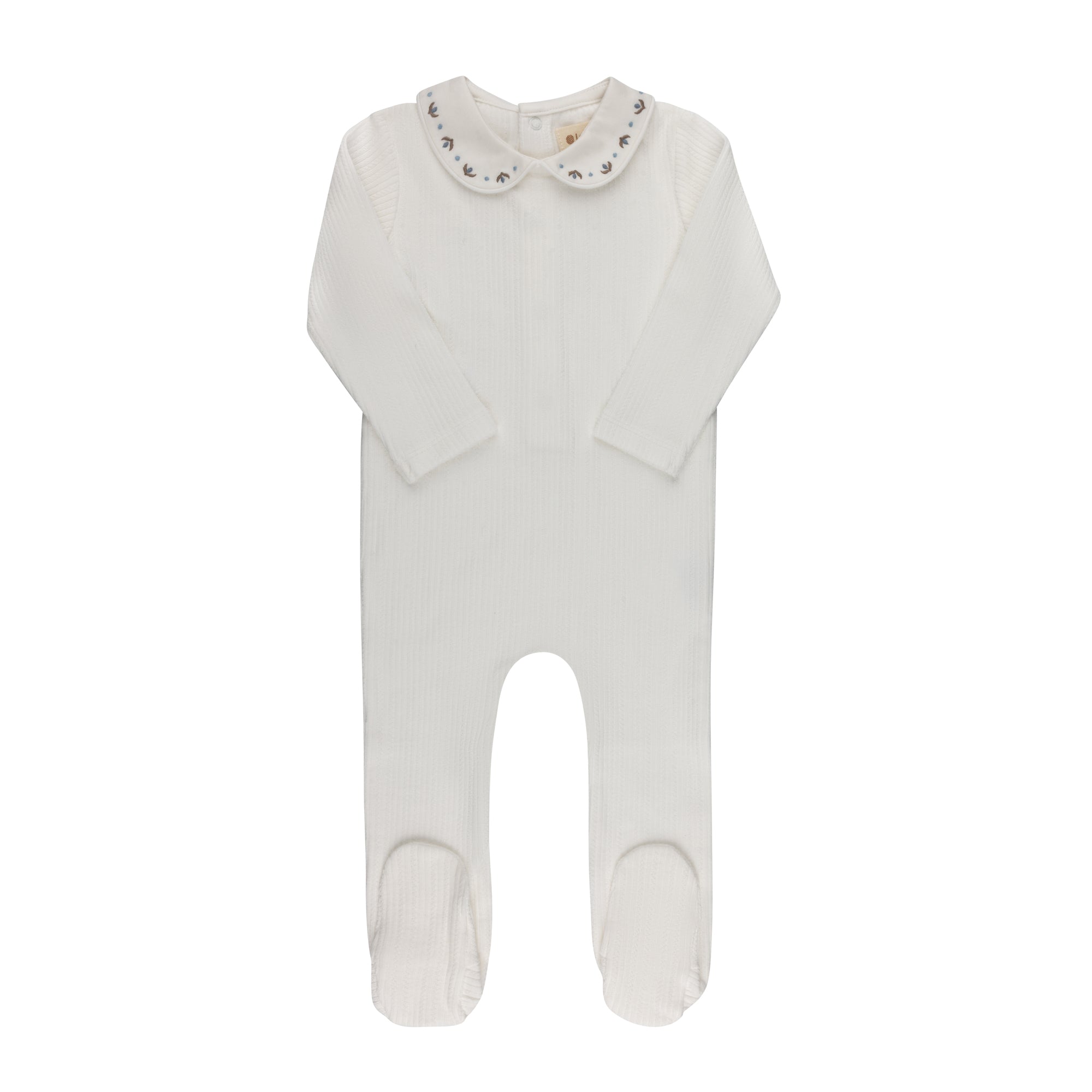 Baby Boy Footie – Ivory/Blue – Keepsake Collection