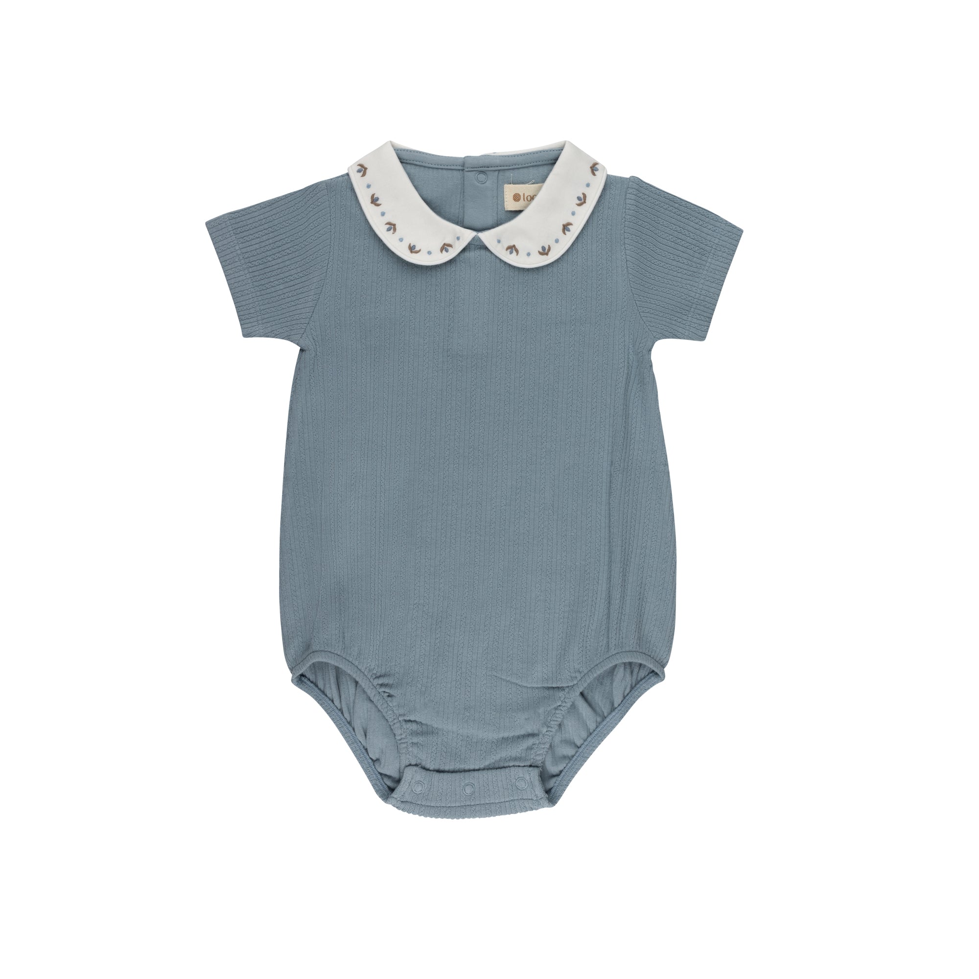 This baby piece is crafted in a soft, gently stretchy knit, featuring delicate heirloom-inspired detailing and a fresh white embroidered collar for a timeless, classic look. Designed with a softly structured silhouette made for the sweetest beginnings.